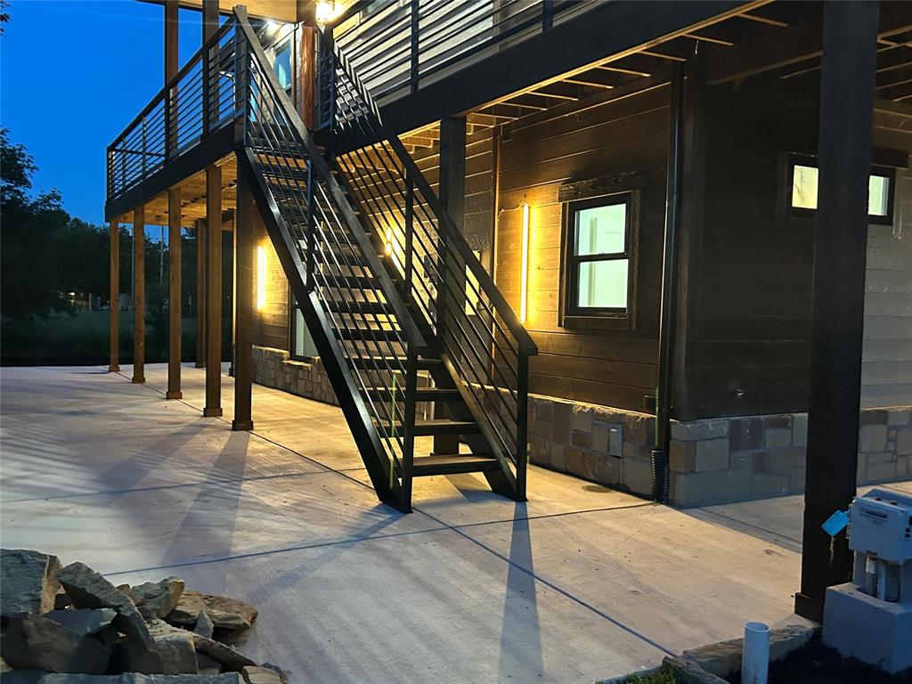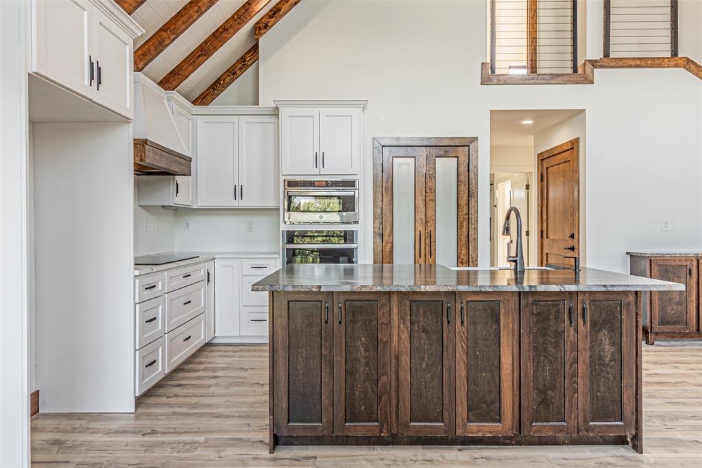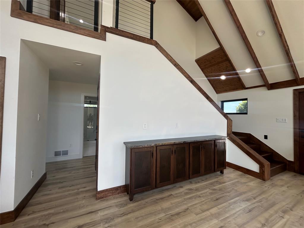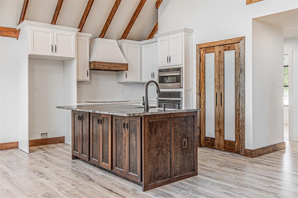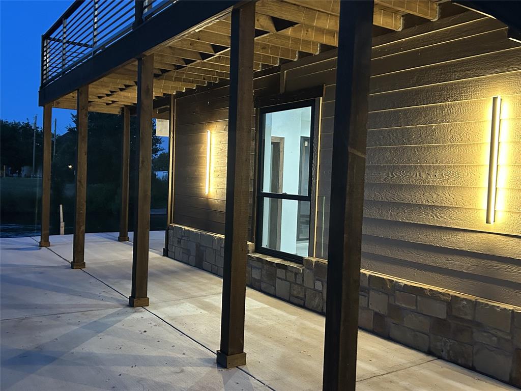 High-end finishes thuout, including high-end Pergo flooring, granite & quartz countertops, custom stain-grade wooden ceiling beams & ceiling woodwork. Gourmet kitchen, featuring stainless steel appliances, oven & convection-microwave oven, 36in drop-in cooktop, 36 in custom vent hood 26-ft ceilings in living area w an upgraded drop-in fireplace, room for a flat-screen TV. 5 sliding glass doors & 27 black-on-black windows for unobstructed lake views & natural light. 3rd Floor Luxury Retreat w High ceilings & stunning woodwork. Custom spa-like bathroom w brushed gold fixtures, double-sink vanity, exceptional tile work on floors, walls, & ceiling High-end wooden ceiling fan. Concreted extra parking. St. Augustine sod, Gutters & lrg culvert for proper drainage. 3 quarter wrap-around porch with gorgeous lake views. Built with attention to detail, ensuring a home that's perfect for luxurious lakeside living. Thi home IS AN **exceptional property** combines the best of lakefront living & high-end craftsmanship, offering a truly **unique opportunity** for those seeking a **luxurious, one-of-a-kind home** on Lake Granbury.