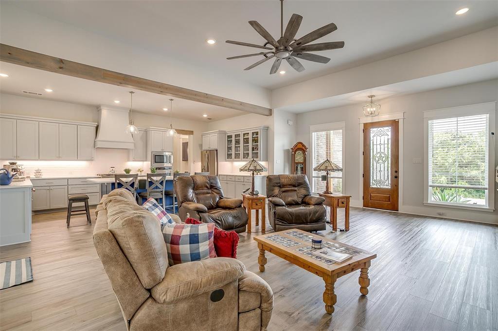 Welcome to your dream home! Newly built in 2023, this stunning custom home is located in the exclusive, gated golf resort community of The Retreat in Cleburne, TX. Thoughtfully designed with an open-concept layout, this beauty offers three generously sized bedrooms and three full bathrooms—two of which are en suite—providing comfort and flexibility for family or guests.The kitchen and living room are sleek and modern with soaring ceilings and filled with natural light creating a welcoming space for everyday living and entertaining. The massive kitchen island seats six.The spacious primary suite features a dreamy five-piece master retreat with a huge walk-in shower and double vanity. The second en-suite bedroom currently set up as an office gives the home dual-master potential.Step outside to your private backyard retreat, complete with a very large covered patio and cozy outdoor fireplace—perfect for social gatherings or watching the wildlife pass through. The beautifully xeriscaped yard features no-water natural landscaping with decorative rock and drought-tolerant plants.Practical high-end features including a 24KW Generac whole-home backup generator with a 5-year warranty, full foam insulation, a security system, window blinds, Spacious laundry room with a sink an more storage. The oversized 3-car garage with allows for the extra toys, boasts a fully covered blue epoxy floor—both practical and polished.Life at The Retreat includes unlimited golf for two residents, no club initiation fee, and access to two resort-style pools, fitness center, pickleball courts, a pro shop, and clubhouse with a chef-led kitchen. Enjoy poker nights, book club, trivia, holiday buffets, Derby watch parties, and more. The private roads invite you to explore the rolling hills in your side-by-side. 24-hour guarded security and a strong sense of community make this home your perfect retreat. Don’t miss your chance to call this exceptional property home—schedule your tour today!