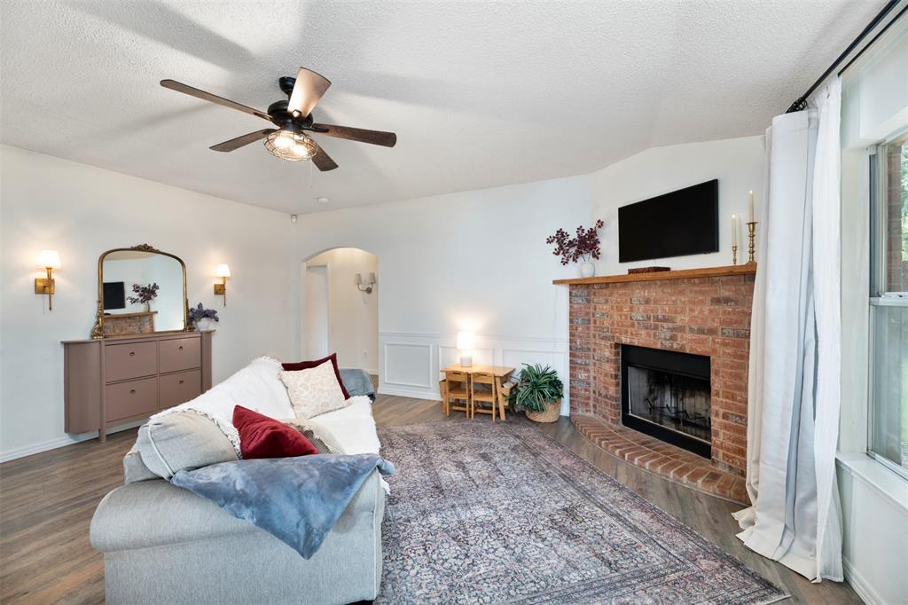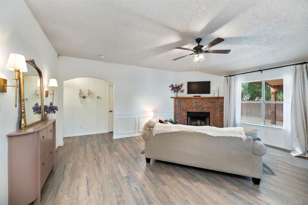Nestled on a peaceful cul de sac, this charming 3 bedroom, 2 bath home in Saginaw offers 1,445 sq. ft. of comfortable living space, making it an ideal retreat. Built in 1999, this brick home features a cozy wood-burning fireplace and a 2 car garage. The driveway easily accommodates two cars and includes an extension that supports parking a trailer or boat in the fenced backyard or provides space for a 3rd car in the driveway. The backyard is a secluded oasis, perfect for relaxation or entertaining. Recently upgraded with a new roof installed in March 2023 and an AC unit, inside and out, replaced in August 2021, this home is move in ready. Located in the Eagle MT Saginaw ISD with top schools ,Bryson Elementary, Wayside Middle, Boswell High, schedule your tour today!