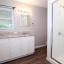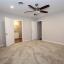 As you step through the front door, you’re greeted by a dedicated foyer and dining area that seamlessly transitions into a cozy yet open living room. The spacious living area features stylish flooring and a statement brick fireplace, creating a warm and inviting atmosphere.