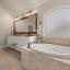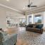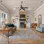 The inviting living room is filled with natural light thanks to expansive windows and showcases a floor-to-ceiling stone fireplace flanked by built-ins—creating the perfect space to relax or host guests. The oversized primary suite is a true retreat, featuring a custom wood-paneled ceiling, spa-like ensuite bath, and an impressively large walk-in closet.