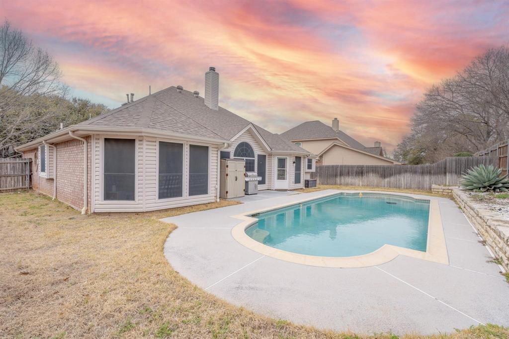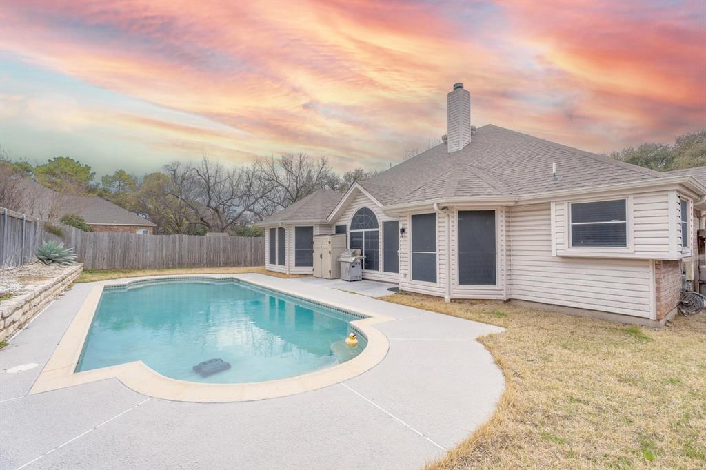 This cozy family home, featuring a beautiful pool, is nestled on a peaceful cul-de-sac. Inside, you'll find a spacious kitchen with elegant quartz countertops, a custom extension complete with a wine cooler, and a stylish new backsplash. The thoughtful split floor plan includes a cozy double-sided fireplace, perfect for creating a warm atmosphere. Both bathrooms have been fully renovated to modern standards. Step outside to your own backyard paradise, designed for ultimate relaxation and tranquility. This house won’t last long, schedule your appointment to tour the house right now.