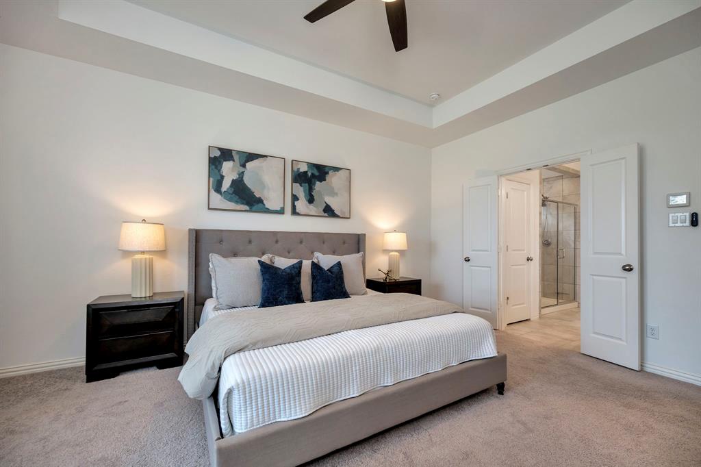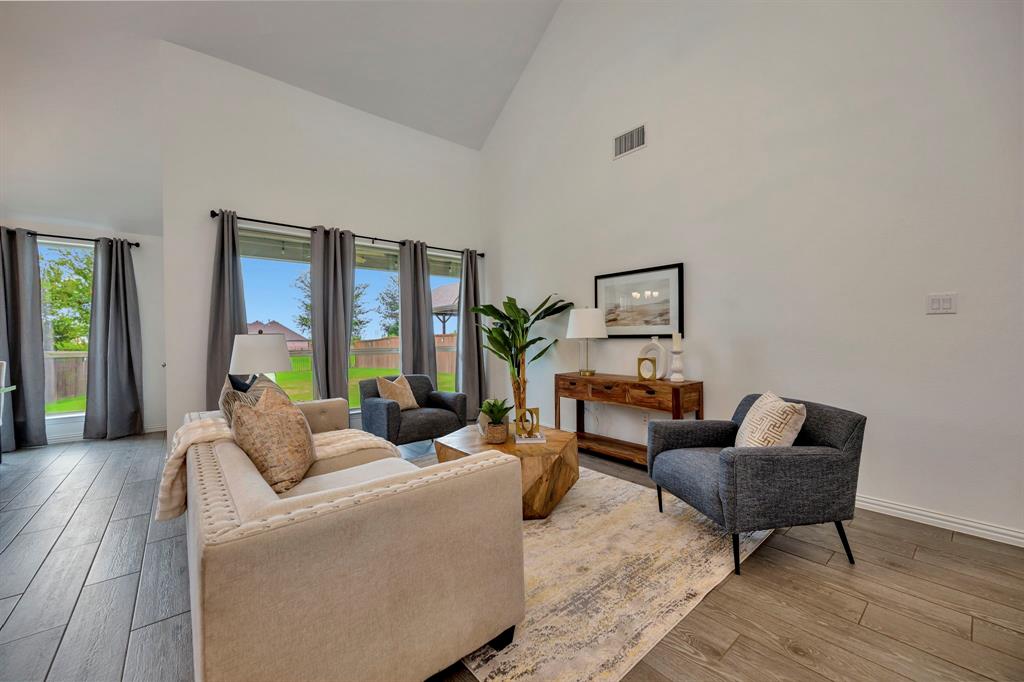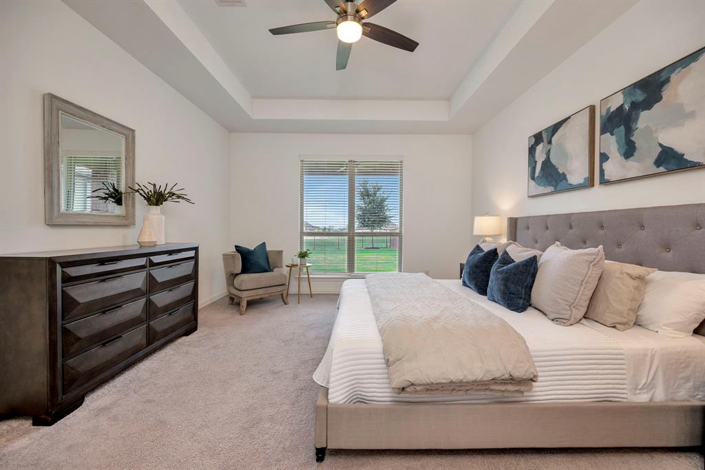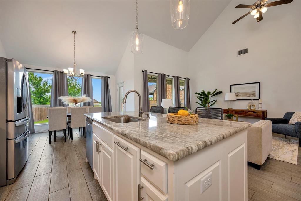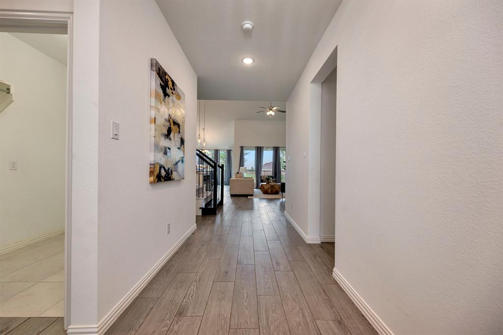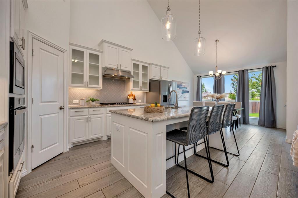 Gorgeous home in a great location near the end of a cul de sac street, in the desirable community of Canyon Falls! A fantastic floor plan with the primary bedroom and a second bedroom, plus a second full bathroom downstairs. The second bedroom could easily be used as an office. Upstairs is a large open game room, two more bedrooms and a full bathroom. The gourmet kitchen boasts beautiful granite counters, white cabinetry, a gas cooktop, a stainless built-in oven, microwave, and the stainless refrigerator stays! The kitchen is open to the large living area with high ceilings! Out back is a long, covered patio and huge back yard with a green space behind the home. Its perfect for entertaining guests and having lots of family fun! Membership in the Canyon Falls HOA comes with high speed internet, lawn maintenance in the front and side yard, and full use of the two community pools, fitness center, dog park, playground, jogging trails and hay barn! There are regularly scheduled community social events that are fun for the whole family! Attends highly rated NWISD schools - Thompson Elementary, Medlin Middle School and Byron Nelson High School! Conveniently located near Roanoke dining and entertainment. Come see why people love living in Canyon Falls!