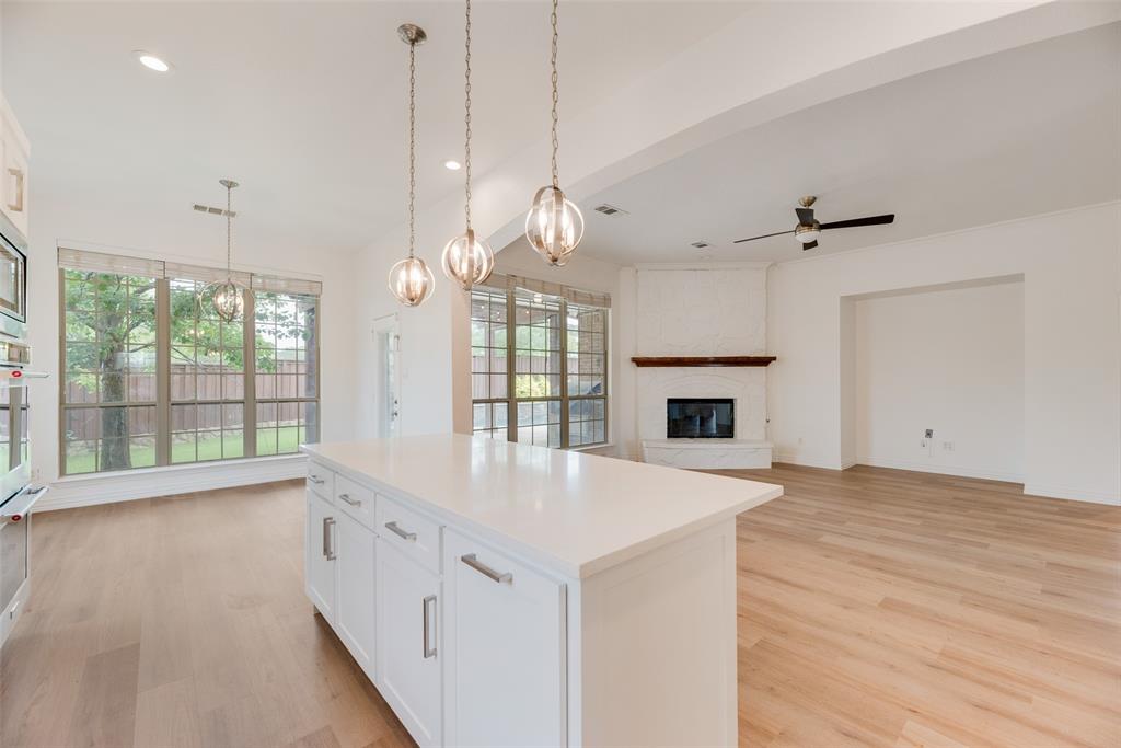 LUXURY VYNIL PLANKS THROUGH OUT THE FIRST FLOOR. MARBLE COUNTER TOPS IN KITCHEN WITH BIG ISLAND. NEW CABINETS, STAINLESS STEEL APPLIANCES WITH DOUBLE OVEN, METAL FARM SINK, GAS COOK TOP. STONE FIREPLACE IN LIVING ROOM AND PATIO.