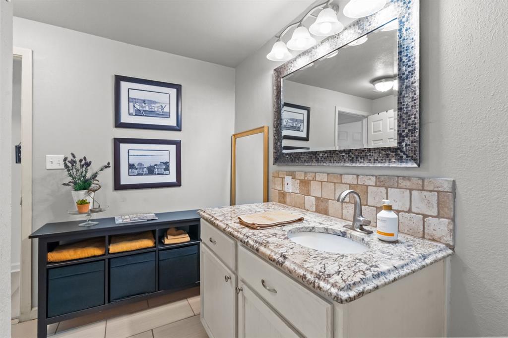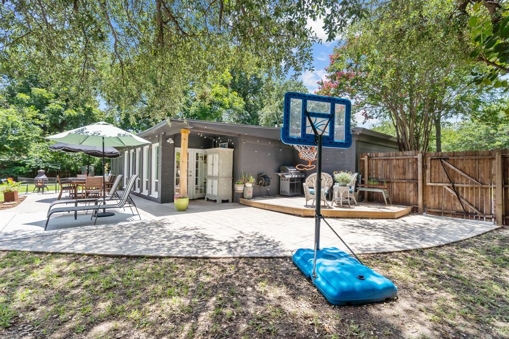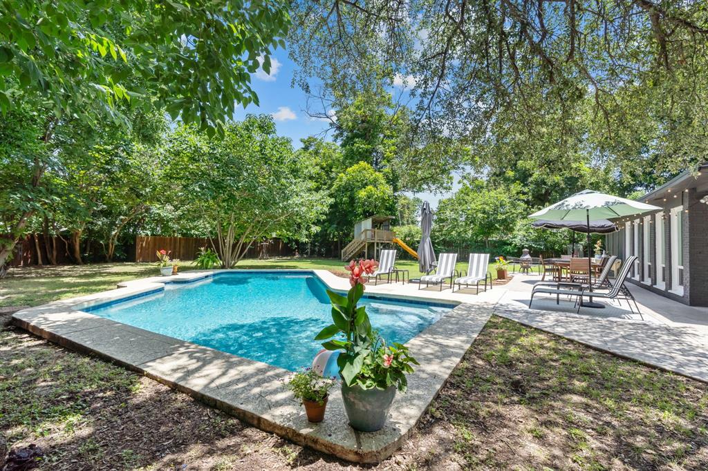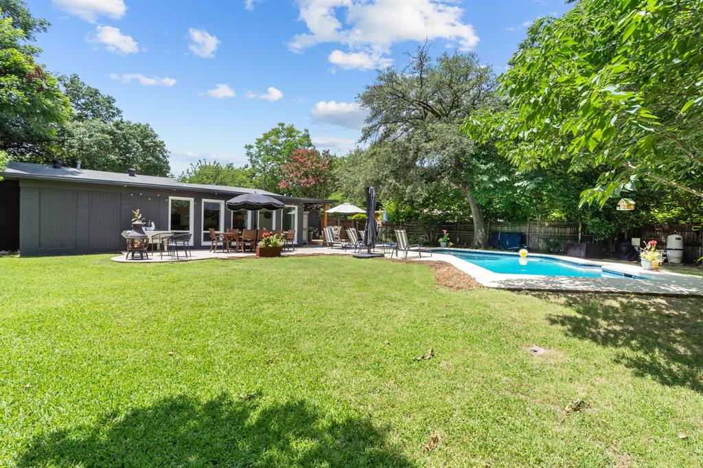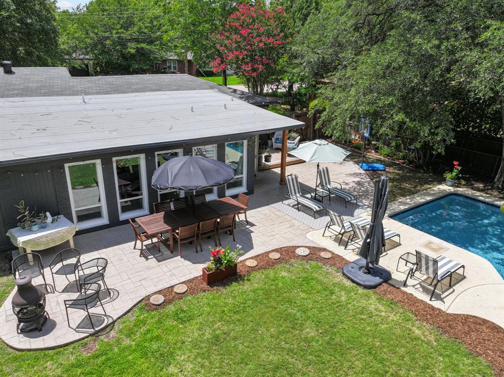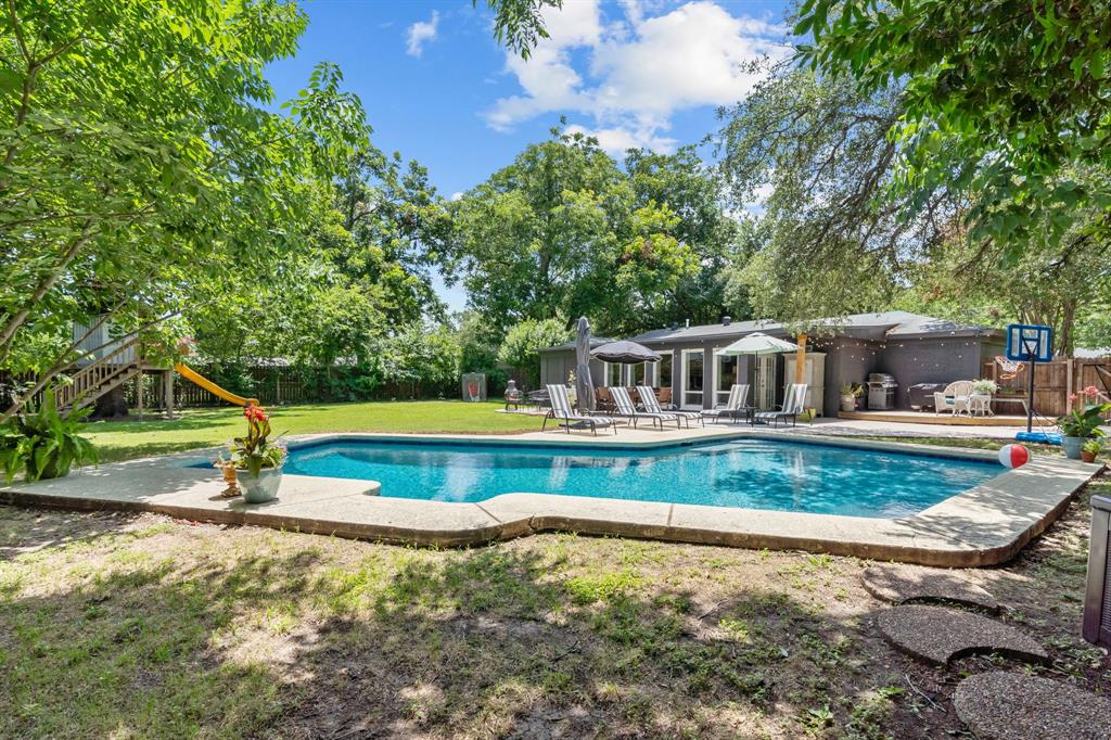 Welcome to this beautifully updated 3-bedroom, 2.5-bath charmer in the heart of Benbrook! Nestled on a quiet street with an oversized lot, towering trees, inviting curb appeal and gorgeous pool, this thoughtfully curated home blends comfort, functionality & boutique-inspired finishes. The open-concept design showcases 2 spacious living areas flowing seamlessly into the lovely kitchen with granite countertops, stainless steel appliances, coffee bar & ice-maker--perfect for entertaining! Step into the light-filled family room where a dramatic wall of windows offers fabulous views of the private backyard & easy access to the attached garage, half bathroom & outdoor living space. Enjoy the sparkling pool, expansive patio, lush grassy area & deluxe treehouse with stairs, balcony & slide--creating a delightful retreat for playing, relaxing and unwinding! The primary bedroom features a stunning, fully renovated ensuite bath & generous walk-in closet. The bedrooms offer considerable storage & third bedroom is a versatile flex space with sliding barn doors for added privacy. With premium finishes and spaces designed for both relaxation & entertaining, this rare gem is conveniently tucked in natural beauty & just minutes from Benbrook Lake, Clearfork, downtown Fort Worth, golf courses, parks, entertainment, restaurants & major highways. Enjoy all this winsome home has to offer! Virtual tour available & recent updates include: Pool - Renovated - gunite & blue pebble finish (April 2025), Concrete patio, sidewalk & wood deck (May 2023), Primary Bathroom - Renovated Ensuite (May 2025), Sub-Floors Replaced (2022), Treehouse - Renovated wood planks, stairs, balcony & slide, Flooring - LVP throughout, Stainless Steel Appliances, Doors, Windows, Lighting, Interior Beam, Exterior Paint & Cedar Accents.