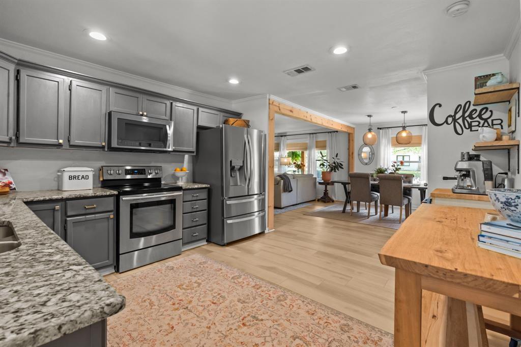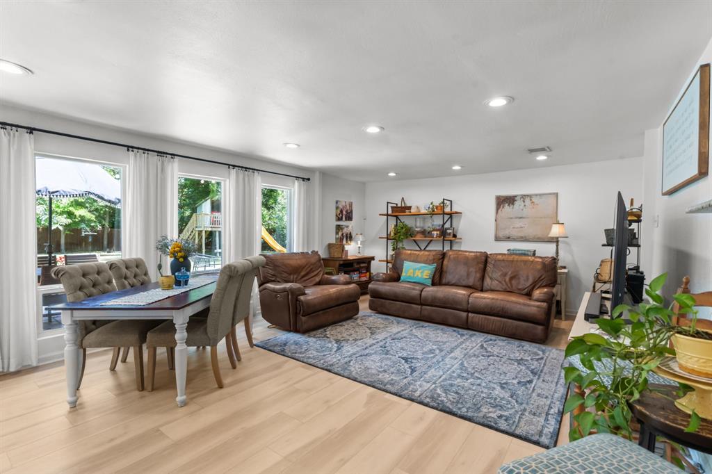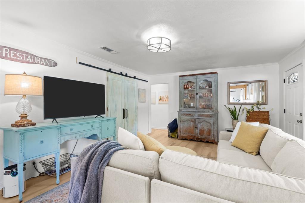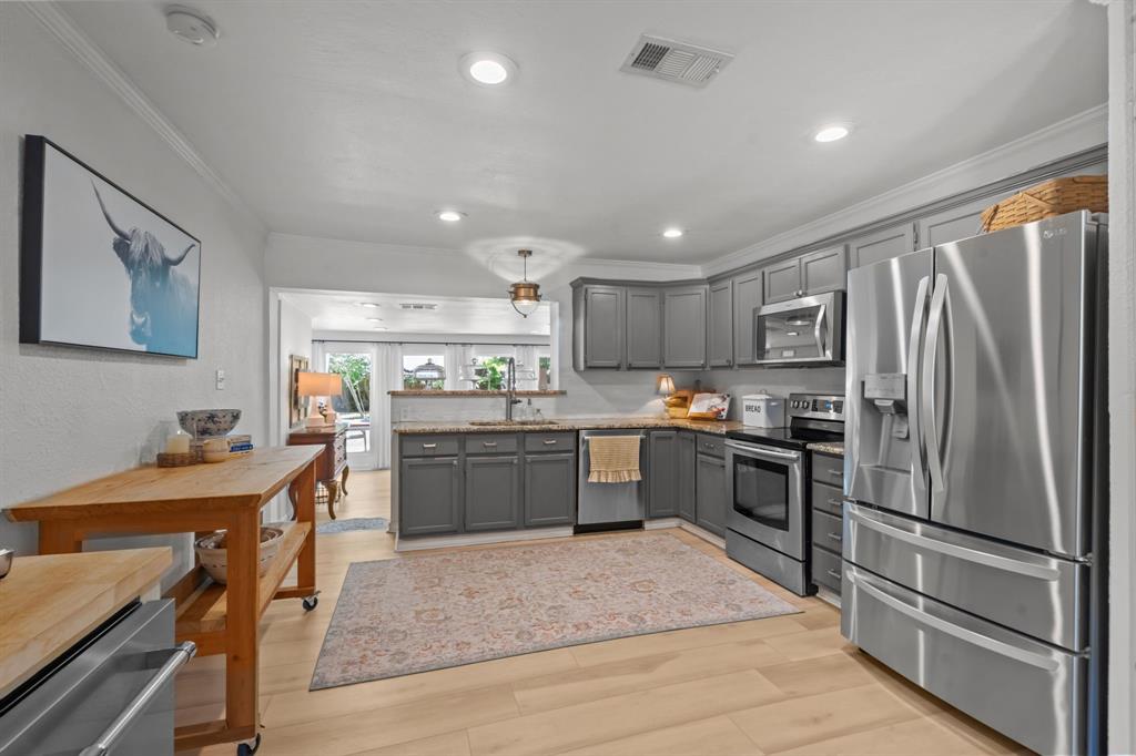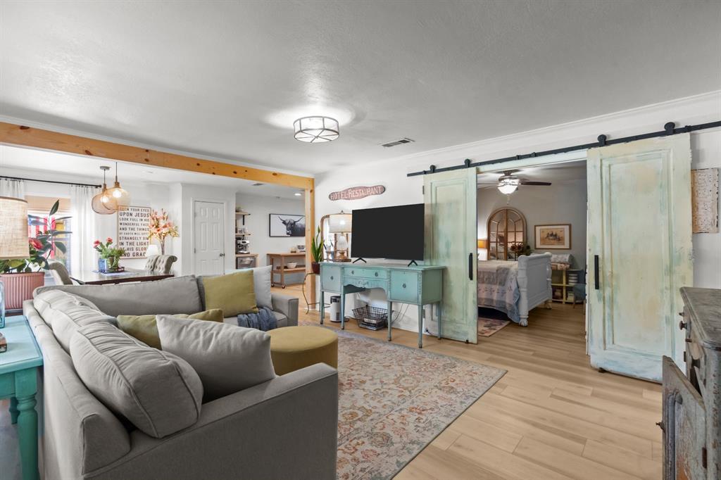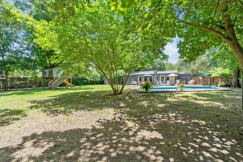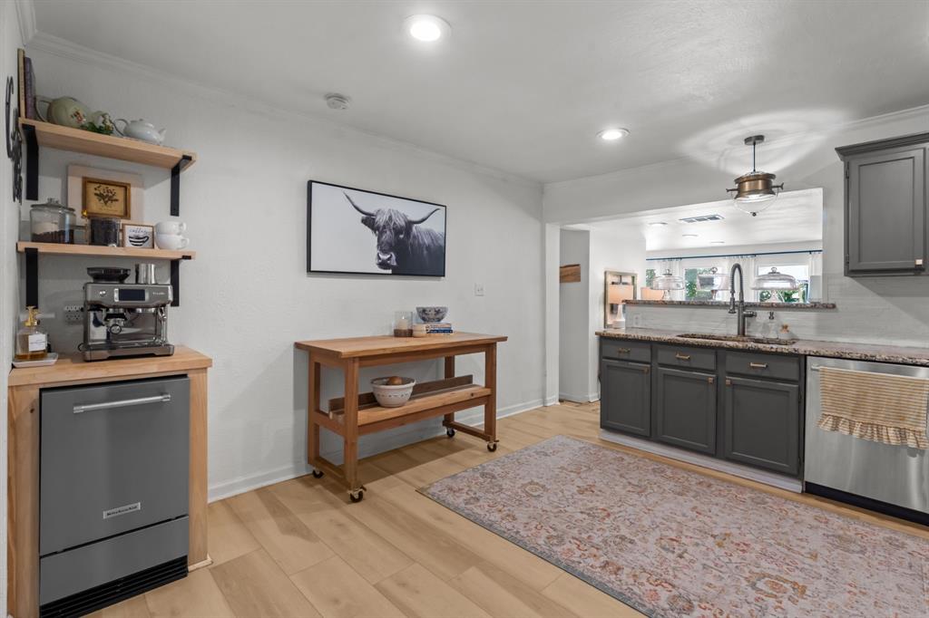 Welcome to this beautifully updated 3-bedroom, 2.5-bath charmer in the heart of Benbrook! Nestled on a quiet street with an oversized lot, towering trees, inviting curb appeal and gorgeous pool, this thoughtfully curated home blends comfort, functionality & boutique-inspired finishes. The open-concept design showcases 2 spacious living areas flowing seamlessly into the lovely kitchen with granite countertops, stainless steel appliances, coffee bar & ice-maker--perfect for entertaining! Step into the light-filled family room where a dramatic wall of windows offers fabulous views of the private backyard & easy access to the attached garage, half bathroom & outdoor living space. Enjoy the sparkling pool, expansive patio, lush grassy area & deluxe treehouse with stairs, balcony & slide--creating a delightful retreat for playing, relaxing and unwinding! The primary bedroom features a stunning, fully renovated ensuite bath & generous walk-in closet. The bedrooms offer considerable storage & third bedroom is a versatile flex space with sliding barn doors for added privacy. With premium finishes and spaces designed for both relaxation & entertaining, this rare gem is conveniently tucked in natural beauty & just minutes from Benbrook Lake, Clearfork, downtown Fort Worth, golf courses, parks, entertainment, restaurants & major highways. Enjoy all this winsome home has to offer! Virtual tour available & recent updates include: Pool - Renovated - gunite & blue pebble finish (April 2025), Concrete patio, sidewalk & wood deck (May 2023), Primary Bathroom - Renovated Ensuite (May 2025), Sub-Floors Replaced (2022), Treehouse - Renovated wood planks, stairs, balcony & slide, Flooring - LVP throughout, Stainless Steel Appliances, Doors, Windows, Lighting, Interior Beam, Exterior Paint & Cedar Accents.
