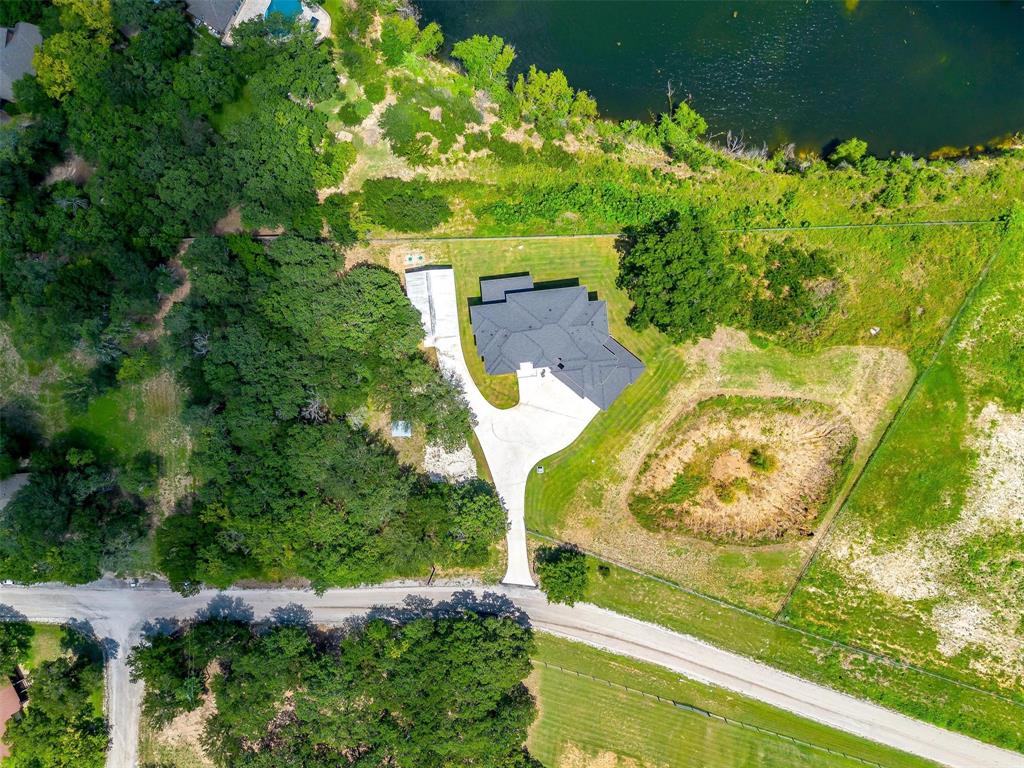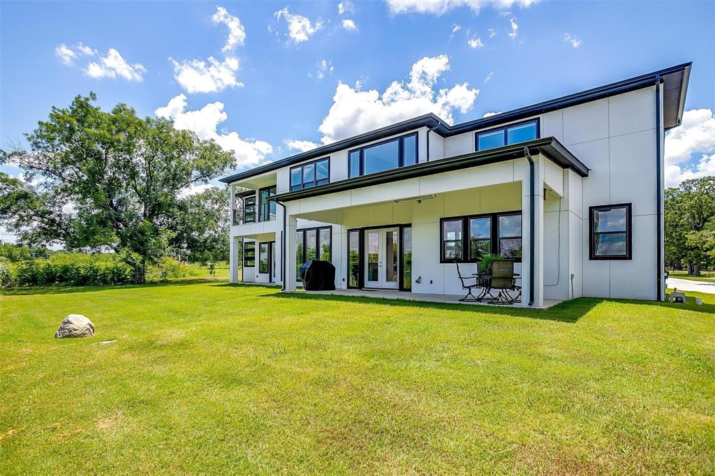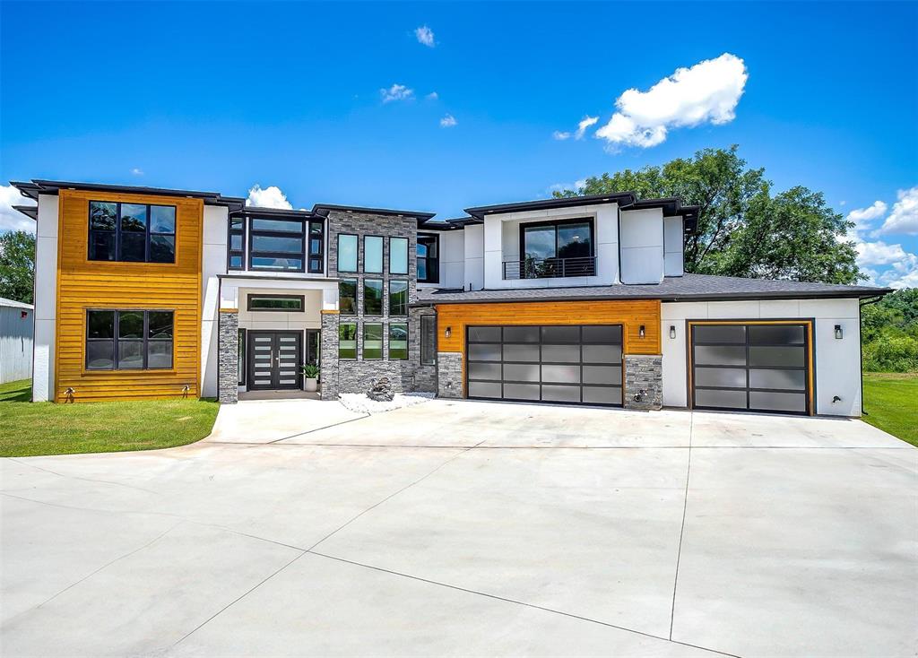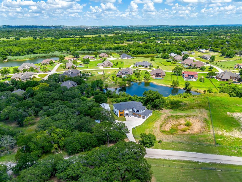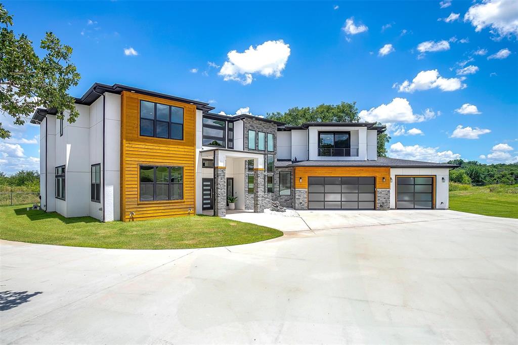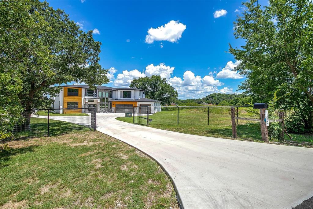 Nestled onto a Secluded Street, you will find this Gated 2 acre lot with a Ton of Native Trees and a One of a Kind Modern Home. Boasting over 5600 sqft, this Home offers 5 bedrooms, 4.5 bathrooms and Views for Miiles from the 2 Balconies and Private Seclusion on the 2 Backyard Patios. The Exterior is Studded with a Modern Design mix of Wood, Steel & Hardie Board, featuring Double Iron Front Doors & a 3-car Garage with Glass & Metal Doors. As you walk into this Custom Home you will find Clean Lines, an Abundance of Natural Light, a Blend of Marble, Wood & Steel, Open Living Spaces, Generous Room sizes & Custom Finishes that set this home apart. In the Entertainer’s Kitchen, you will never lack for Cabinet Space and the Stainless Appliances, Gas Range & Oversized Island add to the Luxury of the space. Off of the Kitchen you will find the Pantry with Plenty of Room to store bulky appliances & including a Prep Area. Enjoy Holiday Meals in the Dining Room that could Easily Accommodate a table Large enough for the Whole Family. The Office provides Ample Space for a Large Desk and all of your accompanying work needs. The Downstairs Primary Bedroom offers a Private Patio for morning coffee and a Closet that you don’t want to miss! As you move Upstairs you will find a 2nd Primary Bedroom complete with Fireplace and its own Balcony that has Stunning Views. Also Upstairs are an Additional Ensuite Bedroom, 2 other Large Bedrooms sharing a Jack & Jill Bathroom and a Game Room Perfect for all of your Fitness Goals, Movie Nights & Teenage Hangouts. After you finish taking in the Wow Factor of the Interior of the Home, also consider the Water Well, Double Tankless Water Heaters & Fully Encapsulated Spray Foam that add to the Functionality of this Pristine Home. The 2 acre lot is Fully Pipe Fenced, has a Barn for storage, a Playhouse, Custom Exterior Lighting, a Seasonal Pond, Plenty of Room for a Pool, all backing up to a Sensational Cliffside View of the Neighboring Lake.
