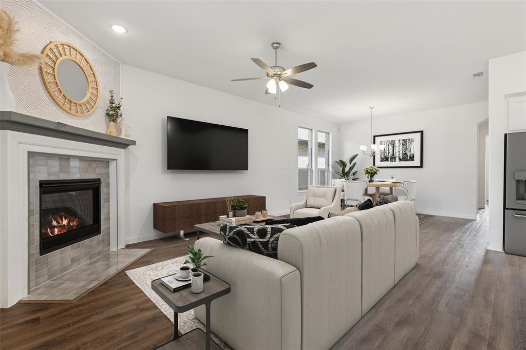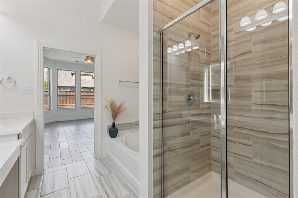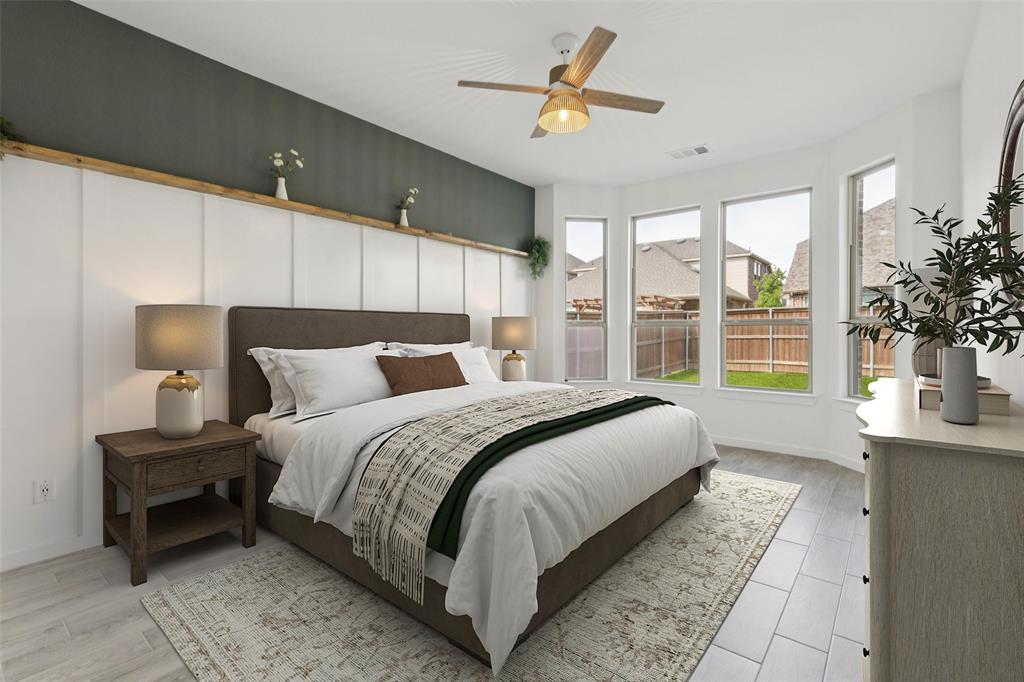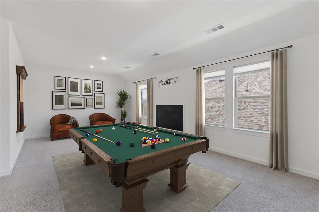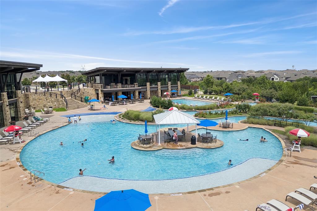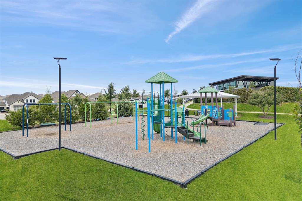 Speaking of entertaining, the magazine-worthy kitchen is anchored by a large center island and comes equipped with chef-grade stainless appliances, a gas-burner cooktop, white quartz countertops, and elegant wood floors that flow throughout the main living areas. The main-level split primary suite features a custom accent wall and a spa-like ensuite with a walk-in closet, spacious walk-in shower, and an even larger soaking tub where you can unwind after a long day. Additional dedicated office, guest bedroom, and full bathroom. Upstairs, you’ll find an expansive game room, 2 additional bedrooms, and another full bath, providing plenty of space for family or guests. The fully fenced backyard is ideal for future gatherings, featuring a covered patio and ample grassy space perfect for a trampoline, playscape, or garden for all the green-thumb enthusiasts. Additional highlights include a tankless water heater, generous storage, extra garage space with epoxy flooring, and a smart HVAC system that can be controlled via an app. The security system including door camera and front and back cameras with Vivint will stay with the home. Community includes bike trails, pools, lazy river, fitness center, playgrounds, dog parks, zip line, firepits, sand volleyball, hammock park, stocked ponds for fishing, pickleball courts, kangaroo jumper, disc golf, clubs, HOA events and an on site school!