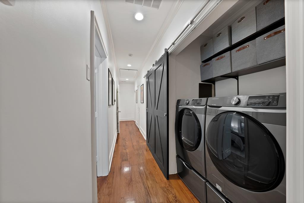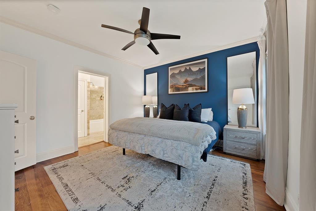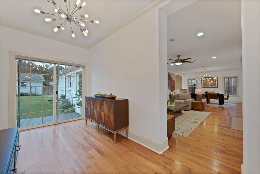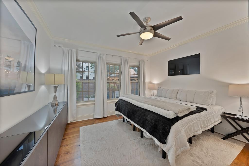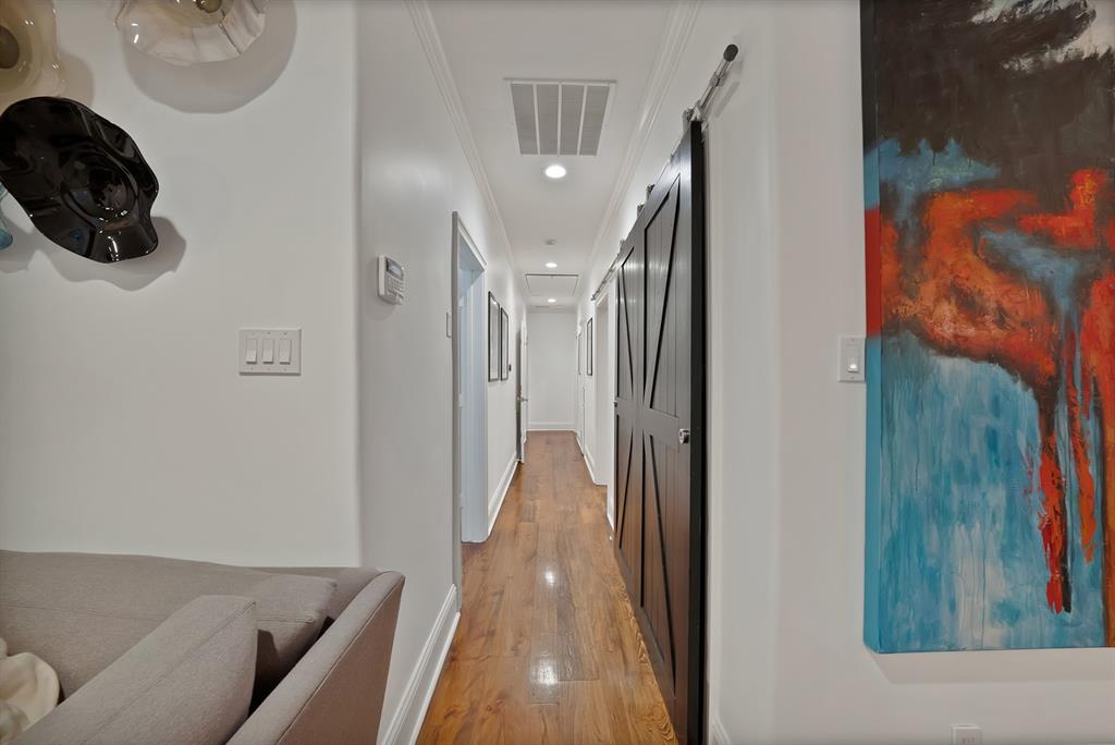 Step into a light-filled interior adorned with rich reclaimed hardwood floors, fresh interior paint, designer lighting, and an upgraded electrical system to support today’s technology needs. A cozy decorative fireplace serves as a warm centerpiece in the living room, ideal for relaxed evenings or entertaining guests.