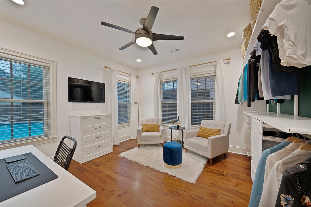 Set on an oversized lot, the backyard is a true retreat. Enjoy the sparkling pool—perfect for both summer fun and quiet relaxation. Tucked away is a fully equipped guest quarters with a private entrance, kitchenette, and full bath—ideal for visiting guests, a home office, or a private studio.