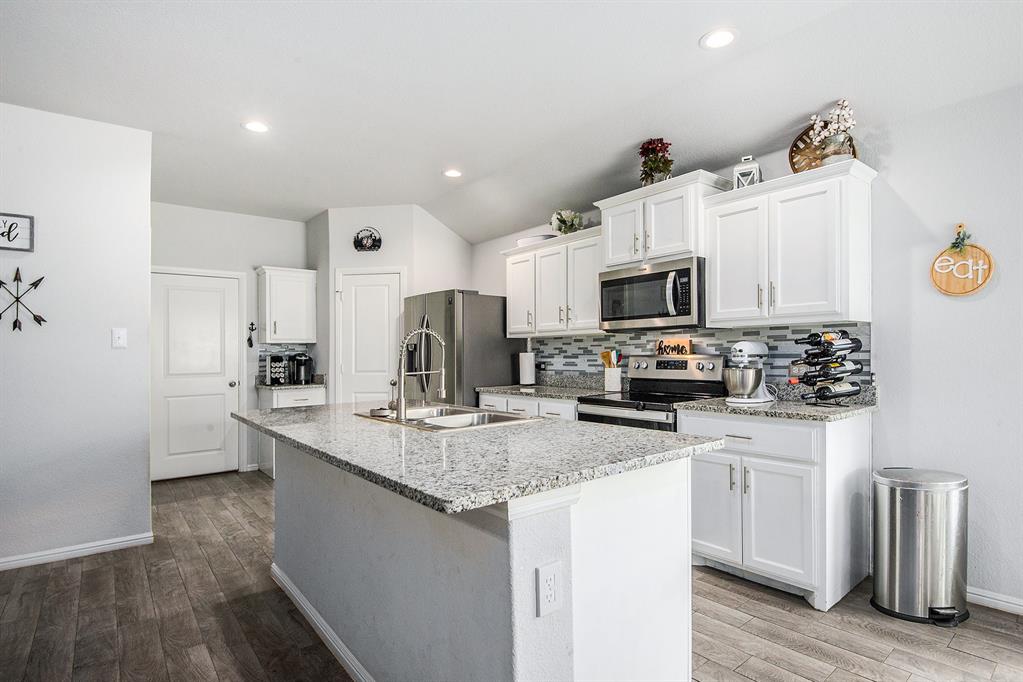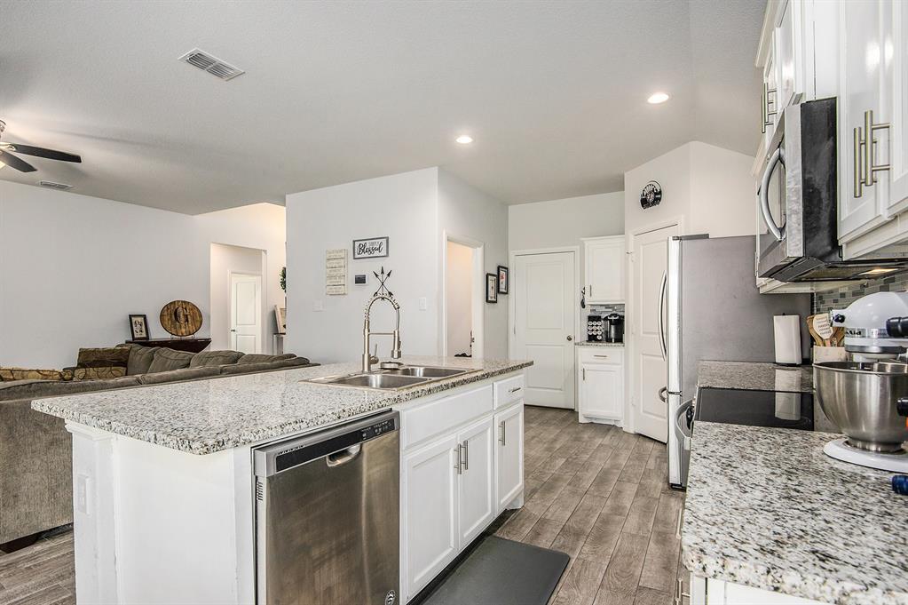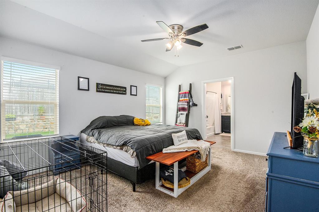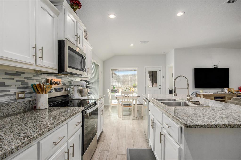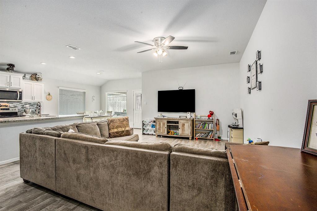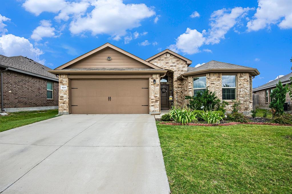 You've got to see this gorgeous 4-bedroom home in the very popular Watersbend South neighborhood, on a very quiet street! This beautiful home features 4 bedrooms and 2 full bathrooms, arranged in a nicely split floor plan. The open layout makes it perfect for hanging out or everyday living. It features some awesome touches, like modern ceiling fans and beautiful white cabinets in the kitchen. The bathrooms are also very nice, perfectly appointed with a huge walk-in closet in the primary bathroom. And if you love spending time outside, you'll adore the big backyard covered patio - perfect for enjoying coffee in the morning or having lunch with friends. The best part? This home is in a master-planned community with plenty of awesome amenities, such as swimming pools (just a very short walk away, see photos!), a splash pad for kids, playgrounds, a clubhouse, and walking trails. Plus, it's close to shopping and dining, and just a short drive to and from DFW Airport. This home is move-in ready, so don't miss out on this amazing opportunity! Priced to sell.