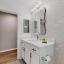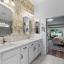 The showstopper chef’s kitchen is loaded with high-end upgrades: a custom-designed island with leathered marble, farmhouse sink, instant hot water, trash compactor, pull-out recycling bins, generous storage, and seating. The Wolf double oven gas range is framed by a mother-of-pearl backsplash and topped off with a convenient pot filler. The under-counter microwave opens with an automatic drawer for easy access. The bay-windowed breakfast nook is complete with a wet bar, wine fridge, and a second instant hot water tap.