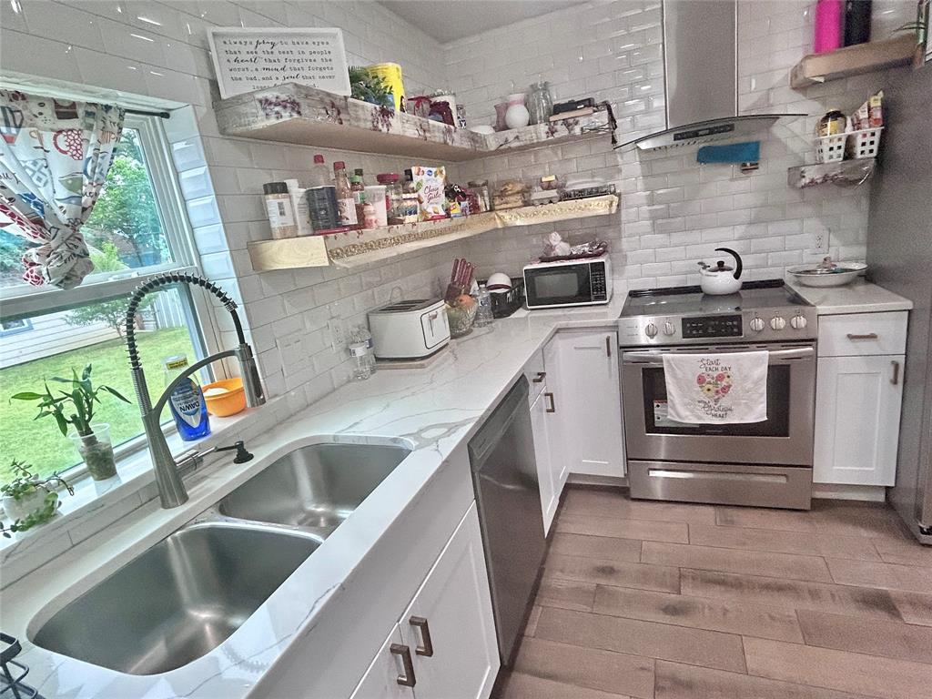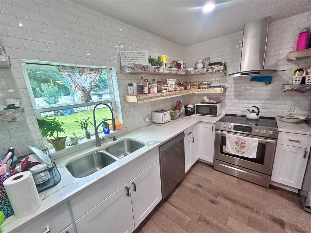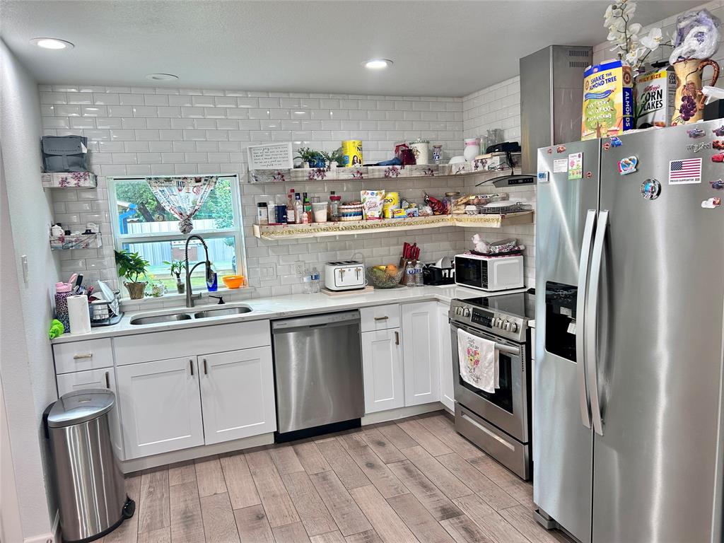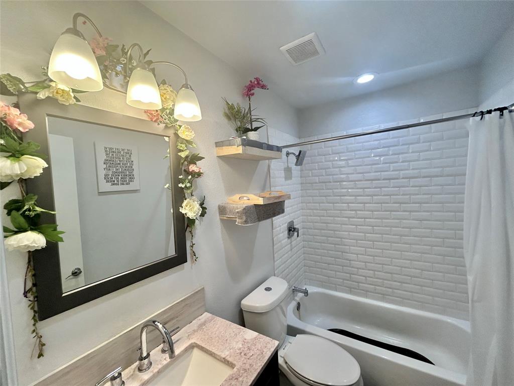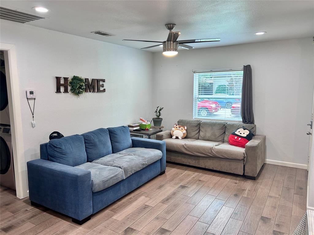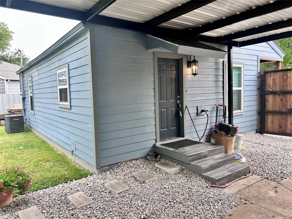 Beautiful and well kept 2 bedrooms 1 bath home with a detached garage conversion for an additional bedroom and full bath very modern for a total of 3 bedroom 2 bath. Garage conversion could be use as a rental or guess house. In addition you will also find a carport for two car spaces and also additional parking for the total of six parking spots. As you come up to the property, you will find a cute front porch, all covered in wood that matches the front gate. As you enter the front of the property you will find the living room with natural light leading to dining area and kitchen. Kitchen has been completely updated with course countertop subway tile backsplash all the way up to the ceiling stainless steel appliances and vent hood. Some other updates include recessive light vinyl flooring throughout updated windows updated bathrooms to include a few. Garage conversion also has its own central heat and air as well as completely updated bathrooms, recessive lights, ceiling fans I’m beautiful tile floors. Private metal fence back yard that includes a cover large back porch on a separate storage. This is a must see please come see for yourself..