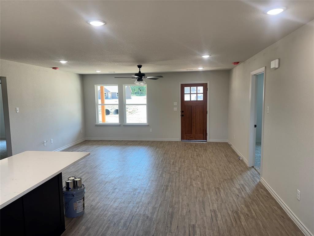 This is a new build located in a new subdivision with NO HOA in Springtown ISD. This home has 3 bedroom 2 bathrooms open floorplan. The kitchen has custom painted cabinets, quartz countertops, island, and stainless-steel appliances. The master bath has double sinks and a walk-in shower. The closet is located in the master bedroom. There is custom tile throughout house and carpet in bedrooms. The laundry room is large with a door leading out to a carport. The back door leads to a large back yard. This is a must see in a quiet neighborhood.