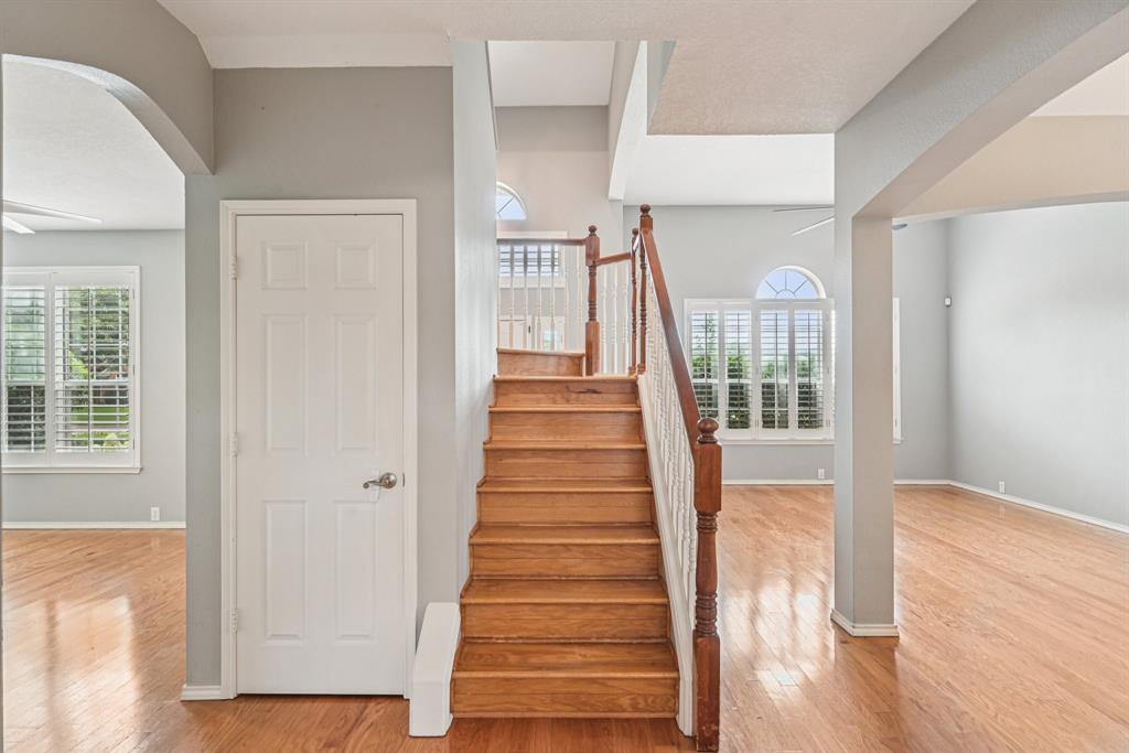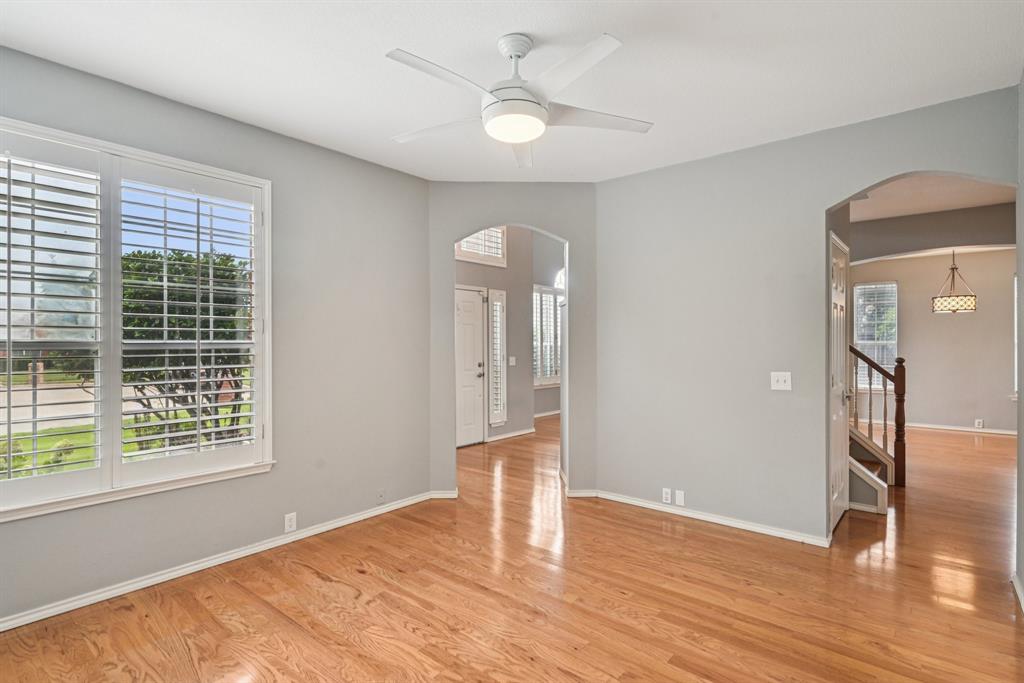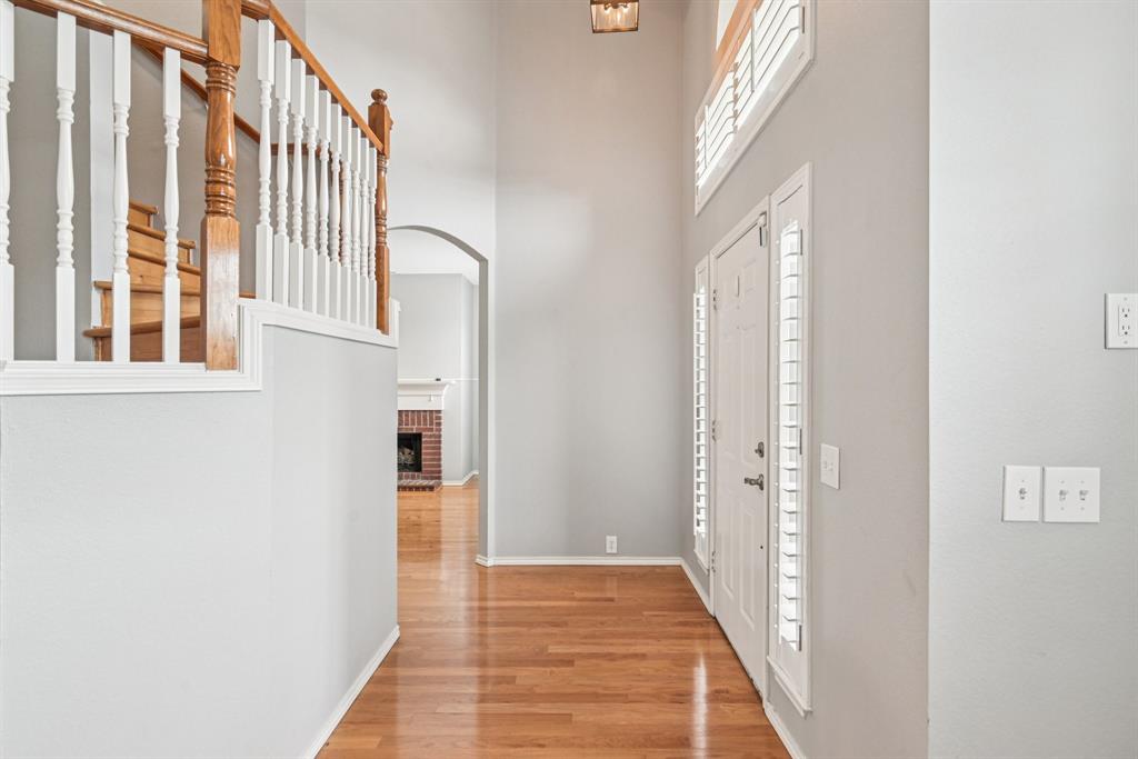 Central Plano BEAUTY!! This gem sits at the end of a cul-de-sac on its own offering the most in privacy. Spectacular curb appeal in this stately red brick home with immaculate landscaping on the over-sized lot. This show-stopper includes a brand new roof, updated HVAC system, new garage door, smart sprinkler system and thermostat, and fresh interior paint making it move-in ready! Upon entering you are greeted with high ceilings, decorative arches and living areas on both sides of the foyer.  To the right is a fabulous family room with gas fireplace that could also be a cozy office or playroom. On the left, find a large, open living area with plantation shutters leading into a dining area with easy access to the fantastic kitchen and breakfast nook. The kitchen boasts stainless steel appliances, granite countertops, marble backsplash and ceramic tile flooring.  Throughout the rest of the home, you will find beautiful hardwood floors. The beautiful wood staircase leads you to a spacious primary bedroom and bath with two additional bedrooms right down the hall. Second full bath is shared by secondary bedrooms. The extra-large backyard with functional cedar pergola gives the perfect backdrop for outdoor entertaining.  The backyard space is very secluded with brick community fence with the neighborhood clubhouse and pool just down the street! Walking distance to Preston Ridge Trail and the many excellent shops and restaurants along Preston Road including a stone's throw from the local HEB. Close to major roadways while being tucked into an amazing neighborhood. Award winning Plano ISD. Don't miss this one!