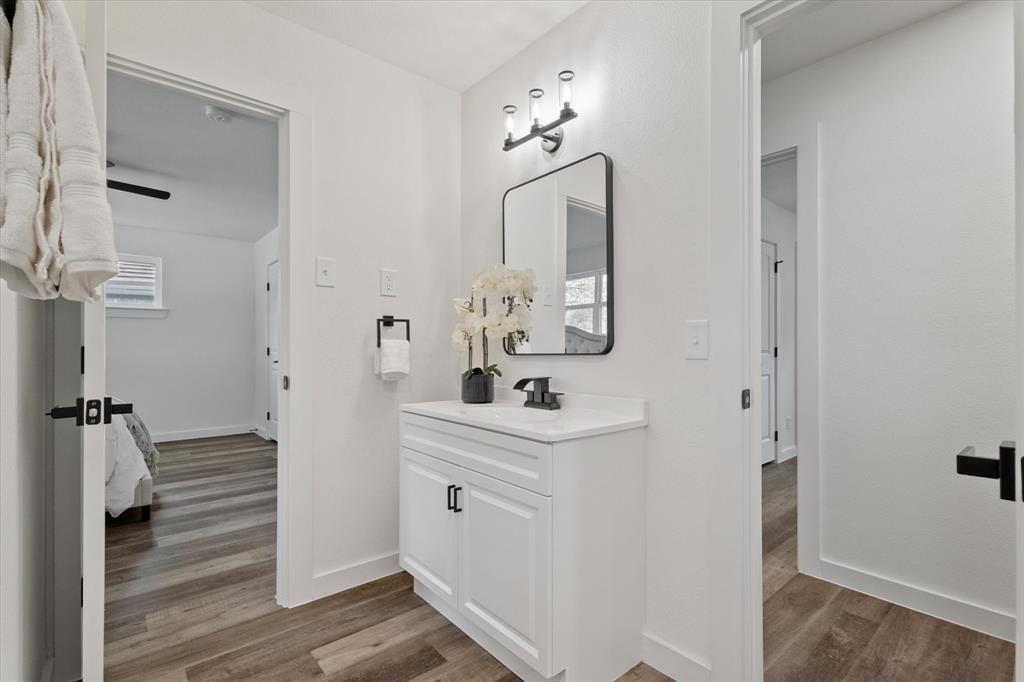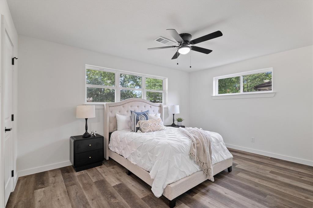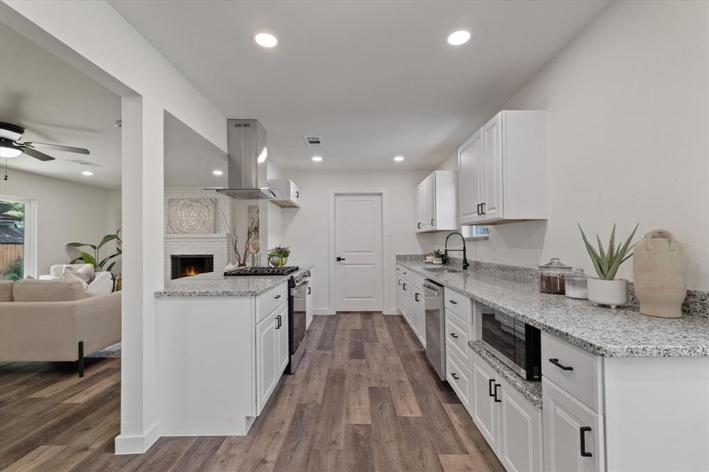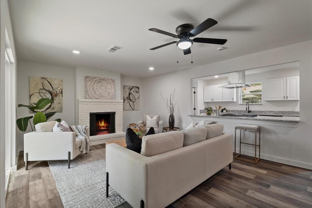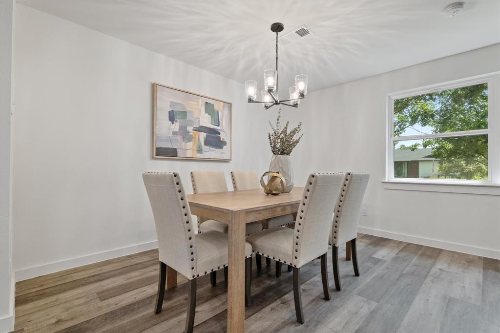 Welcome to 5835 Sunnywood Drive, a beautifully updated 3-bedroom, 2-bathroom home in the highly regarded Buckner Terrace neighborhood of East Dallas. This move-in-ready property offers modern finishes, spacious living areas and a location known for its mature trees, established community feel and convenience to major Dallas destinations. Inside, you will find fresh neutral paint and durable vinyl plank flooring throughout. The layout is flexible and functional, featuring a formal dining space with designer lighting and a fully remodeled kitchen complete with granite countertops, stainless steel appliances and a breakfast bar that opens into a large living area with a classic brick fireplace. The primary suite features natural light and a modern en suite bath with a standing shower. Two additional bedrooms offer ceiling fans and share a thoughtfully renovated full bath. A private backyard with a full wood privacy fence, mature shade tree, and patio creates a relaxing outdoor space. Key upgrades include a new HVAC system and water heater (installed Dec 2024), enhancing comfort and efficiency. A 2-car garage and rear driveway provide ample parking options. Situated just minutes from White Rock Lake, The Dallas Arboretum, and I-30, this home offers excellent connectivity to nature, culture, and city life—all within a well-established neighborhood setting. 5835 Sunnywood Drive is a fantastic opportunity for those seeking a comfortable, updated home in a sought-after East Dallas location.
