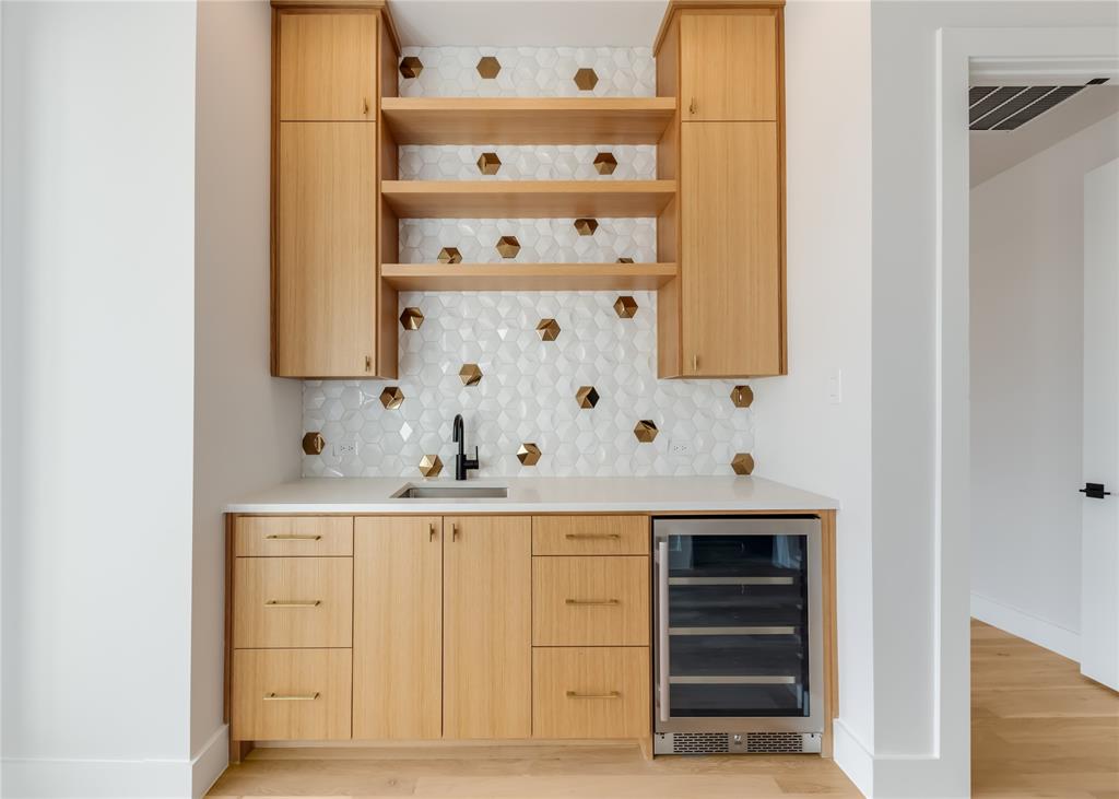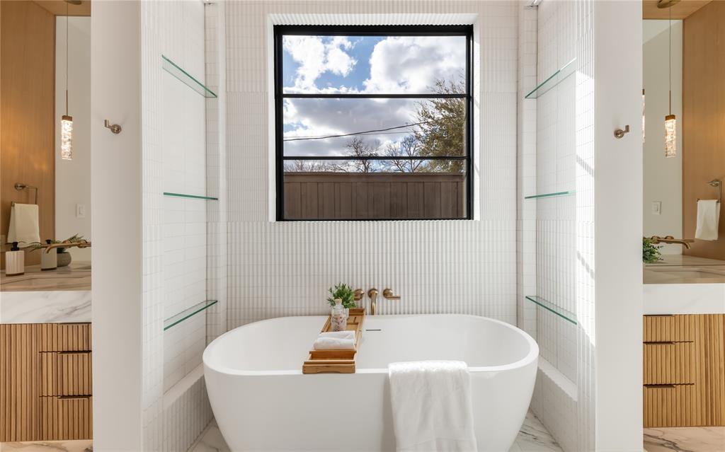Experience the pinnacle of craftsmanship in this meticulously designed 5-bedroom, 5.1-bath residence spanning 4750 sq ft, thoughtfully created by award-winning, third-generation builder Chris Sandlin Homes. This residence exudes a soft contemporary feel, featuring solid oak wood flooring, smooth wall finishes, and bespoke rift-sawn white oak cabinetry throughout. Entertain effortlessly in the expansive kitchen, living, and dining areas, where soaring 12-ft ceilings, a striking custom staircase, and a sleek 48” Montigo linear fireplace create an inviting ambiance. The chef’s kitchen impresses with Monogram appliances, an island with integrated lighting, high-grade quartz countertops, a wet bar with wine storage, and a hidden walk-in pantry for seamless organization. The primary suite offers a serene retreat with luxurious details, including a white oak ceiling beam, a vessel tub beneath a chandelier, and a walk-in shower with a floating seat. The expansive custom closet connects directly to the first-floor laundry for ultimate convenience. Upstairs, an oversized game room with a built-in bar, four additional en suite bedrooms, and a second laundry room enhance everyday living. Step outside to the elevated outdoor living space, complete with a covered patio, gas fireplace, outdoor kitchen, and motorized shades—perfect for year-round entertaining. The home also features an over-engineered foundation, premium insulation, metal roofing, tankless water heaters, and a full security system for peace of mind. This modern masterpiece is where thoughtful design meets effortless luxury—crafted for those who appreciate the finest in contemporary living.