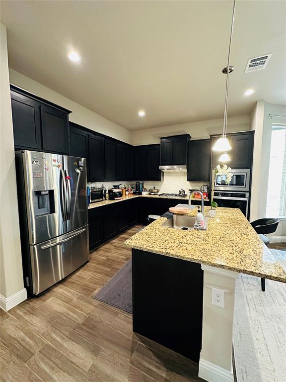 Beautiful open concept home built by America's Builder DR. Horton in the Alcove at Hickory Creek. The one story home with 4 bedrooms, 2.5 bathrooms * Chef's Kitchen with granite countertop, tiled back plash, Breakfast bar, stainless steel built-in appliances, gas cooktop & W-I Pantry, large primary bedroom with dual sink vanity, garden tub and large walk-in closet; tankless water heater, covered back patio, landscape with full sprinkler system, garage upgraded with epoxy floor, and more. Great location with all markets surrounding such as Walmart across the street, Albertsons, Aldi,...; 1 mile from highway I35E. Can't beat this location.