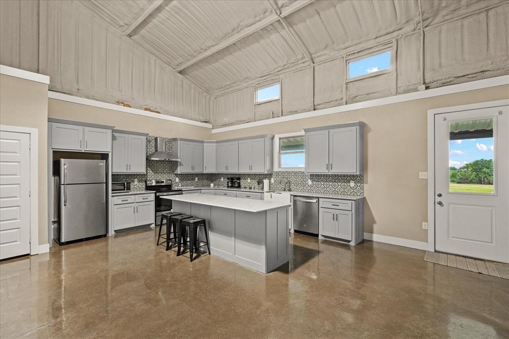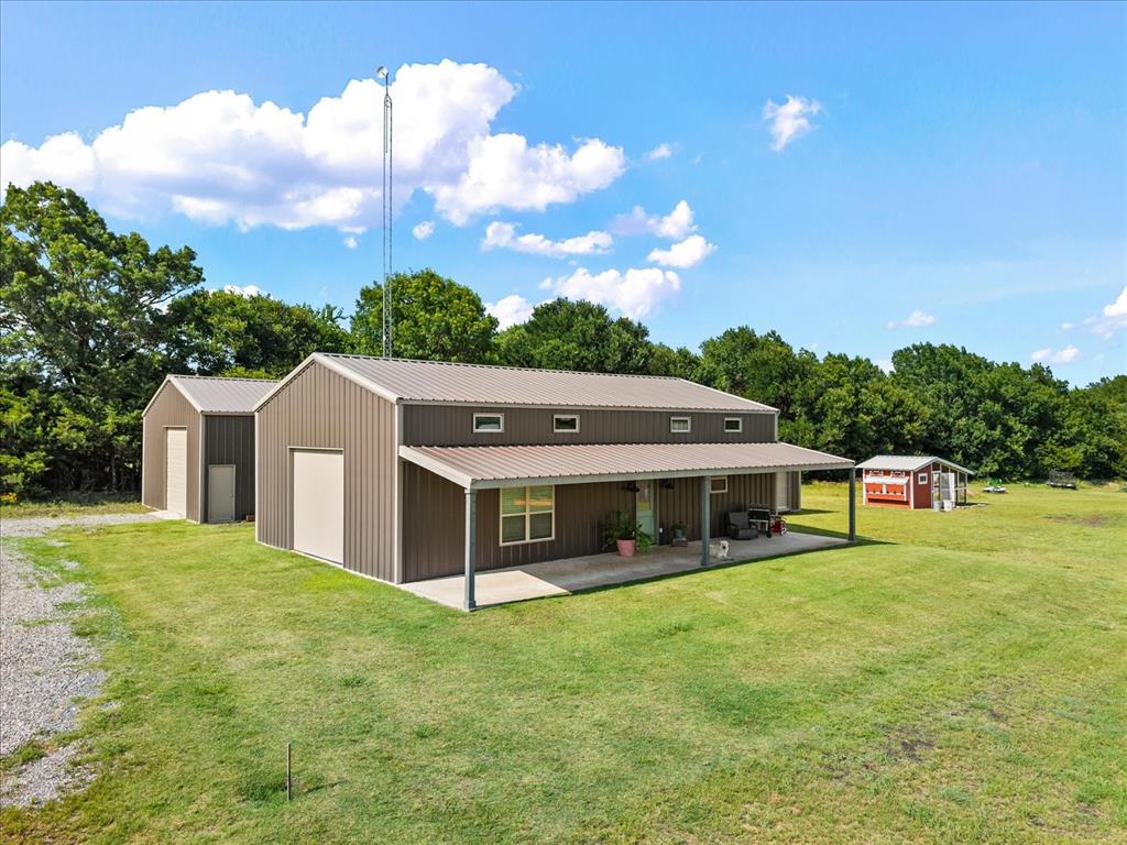 Outdoors, enjoy large porches with fireplace overlooking the lake, resort-style living with a fully equipped 1,500 sq ft barndominium featuring a full kitchen, bedroom and bathroom—perfect for entertaining or guest quarters. A separate 1,500 sq ft workshop, custom chicken coop, and multiple fenced areas make this property ideal for hobby farming or livestock. Currently home to bees, chickens, sheep, and miniature Highland cows, the estate provides a luxurious take on farm life.