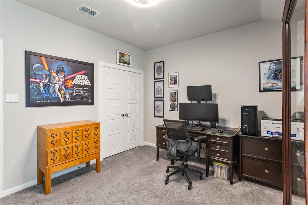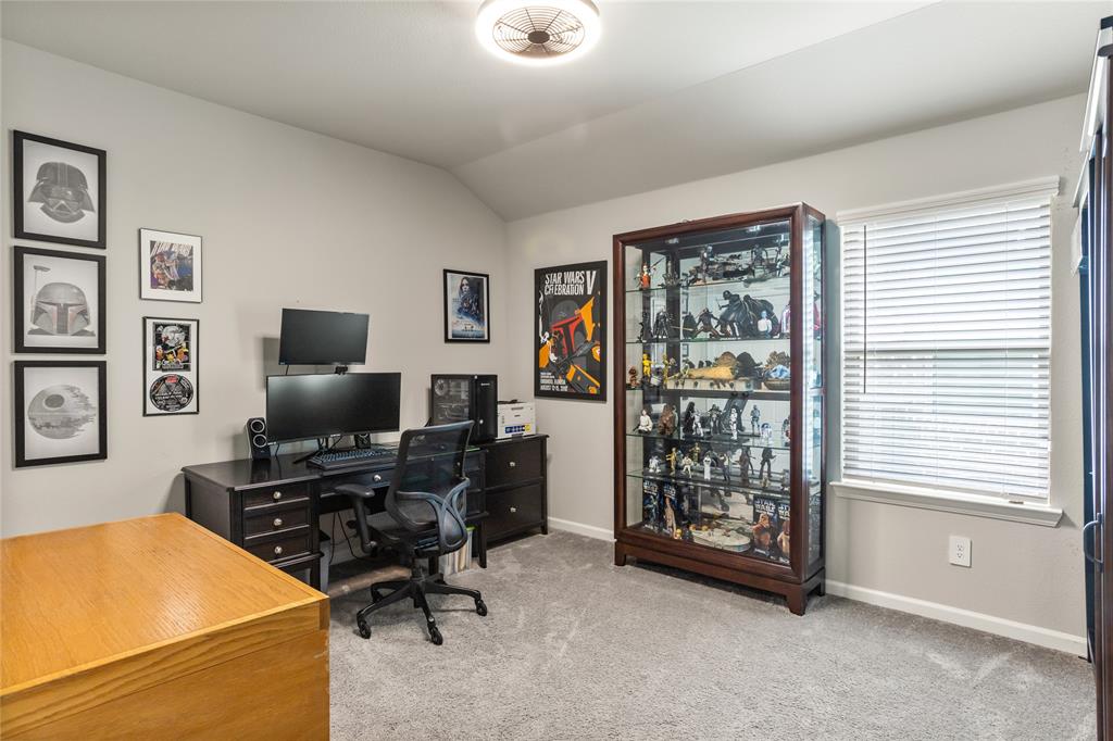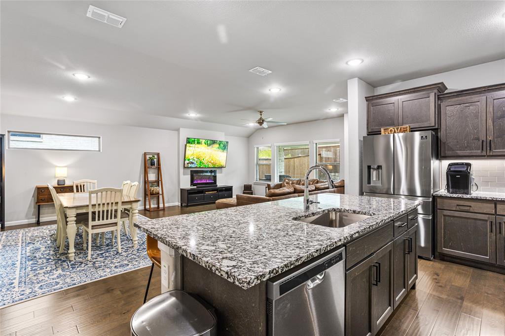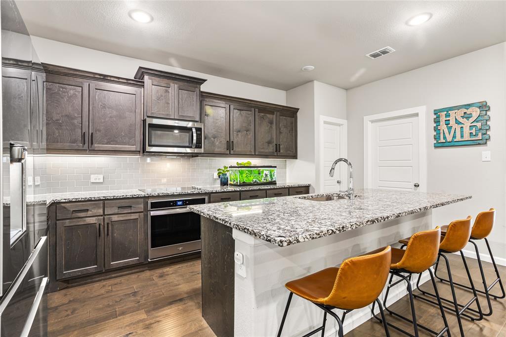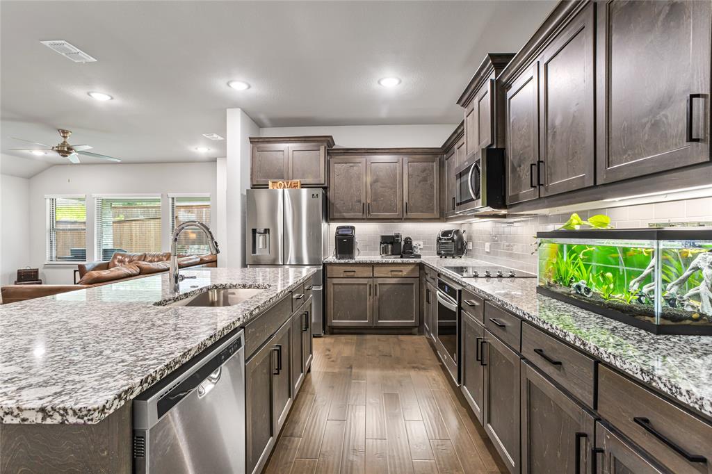 Enjoy all Buffalo Ridge has to offer, including its community pool, playground and walking paths, and its proximity to Howard Jr High, Waxahachie Sports Complex, healthcare, a movie theater, restaurants, shopping, US 287, healthcare, and historical downtown Waxahachie, approximately three miles away. Built by Trophy Signature Homes in 2021, this property offers a blend of comfort, functionality, and space, making it an ideal choice for your next home. Boasting a modern flair both inside and out, the open-concept design seamlessly connects the spacious dining and living areas, featuring an electric fireplace; island kitchen, with stainless steel appliances and finished with walls of cabinets and granite countertops, including wide breakfast bar; and bonus nook, with built-in (think study desk or ideal location to display a buffet spread while entertaining in the backyard). The single story floor plan, with 4 bedrooms (split 3 ways, with the primary bedroom thoughtfully tucked away for added privacy), and 3 full bathrooms (a rare find in this price point!), has a surprising amount of storage throughout the home, adding to the overall appeal. And get this unique highlight - the attic, floored for storage, is tied into the HVAC system, helping to keep electric bills down. Situated on a large cul de sac, additional property features and upgrades include engineered hardwood flooring in social areas; tile flooring in bathrooms and separate utility room; walk-in pantry; ceiling fans; tankless electric water heater; 2-car garage, with electric garage door opener & 240V outlet for charging an electric vehicle; sprinkler system, with rain sensor; gutters; and a fairly private backyard, with 15' covered patio. Class 4 roof shingles, installed June 2025, may qualify owner for lower insurance premiums. Mandatory owner's association, with fairly low fees. Buyer and buyer's agent to verify all information, including, but not limited to, room dimensions, features and schools.
