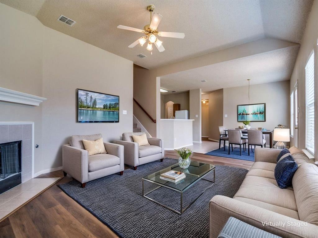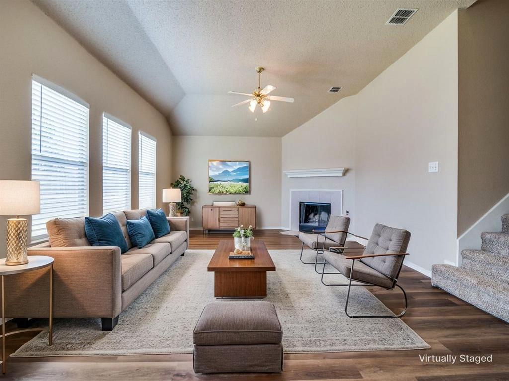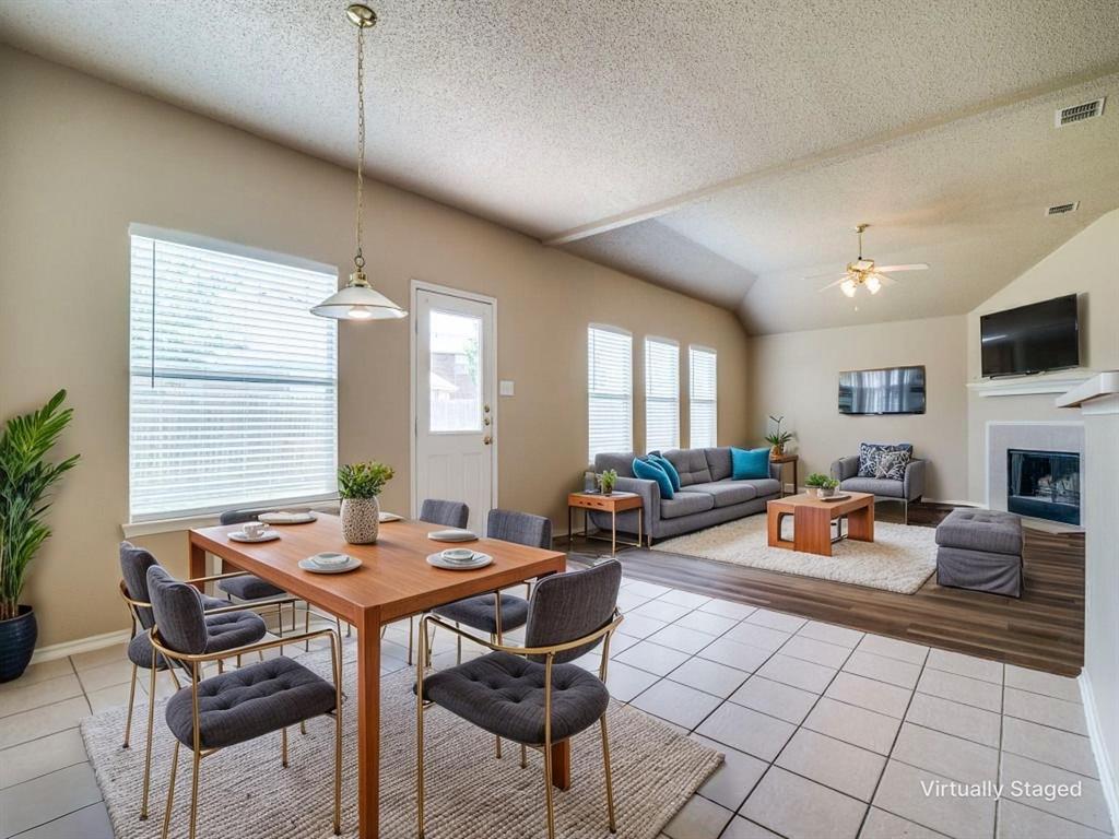 Charming and Updated 4 bedroom Residence with a 2 car garage! Step inside and be greeted by the brand-new luxury vinyl plank flooring that flows through both living areas, the halls, and the primary bathroom, offering durability and aesthetic appeal. Plush new carpet enhances the cozy atmosphere in all bedrooms and the upstairs game room. The kitchen and laundry room feature tile flooring for ease of maintenance. Fresh paint and natural light accentuates the home's bright and airy ambiance. Enter the expansive living spaces, including two distinct living areas perfect for entertaining or relaxation. A welcoming wood-burning fireplace provides a cozy focal point for colder evenings, adding warmth and charm. Upstairs, the 20 X 13 game room could be used as a 5th bedroom and offers additional flexible space for leisure or creativity. The kitchen comes with ample storage and workspace. Exterior features of this home include a combination of classic brick and durable siding. The lot provides ample outdoor space for various activities or the creation of a personalized garden retreat. The HVAC was replaced in 2024 and the roof was replaced in 2021. This home perfectly blends practical upgrades with a warm, inviting atmosphere, making it a must-see property in Forney.