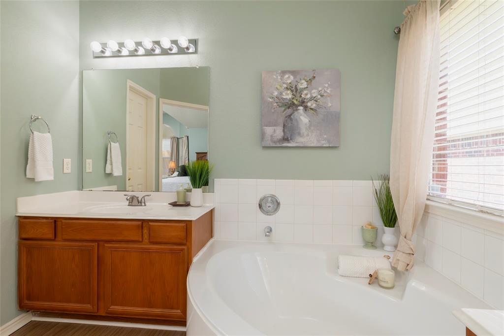 Absolutely Gorgeous Move-in Ready Home in Keller ISD—4-bdrm 2 bath or 3 bdrm w Office, offering 2,825 sq ft of thoughtfully designed living space, where timeless charm meets modern comfort. From the moment you arrive, you'll be captivated by the mature trees & manicured landscaping.