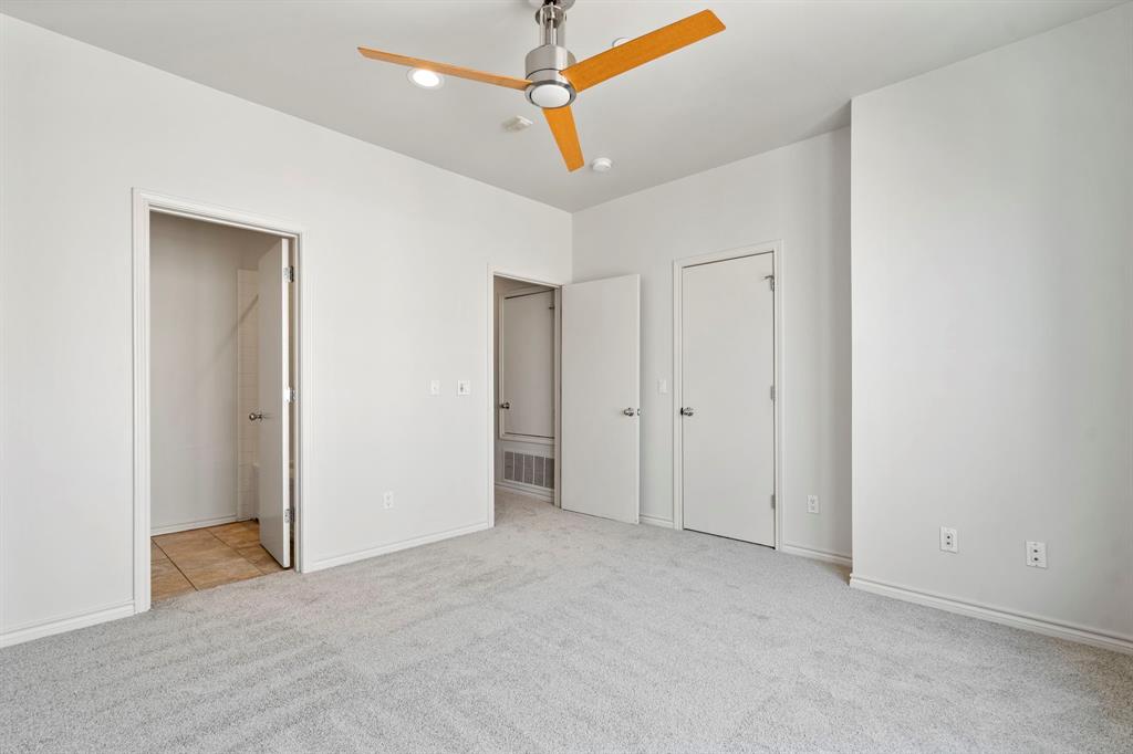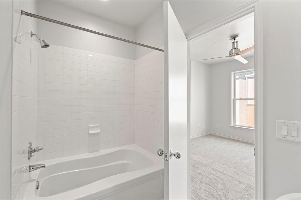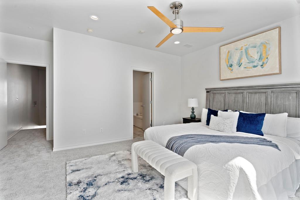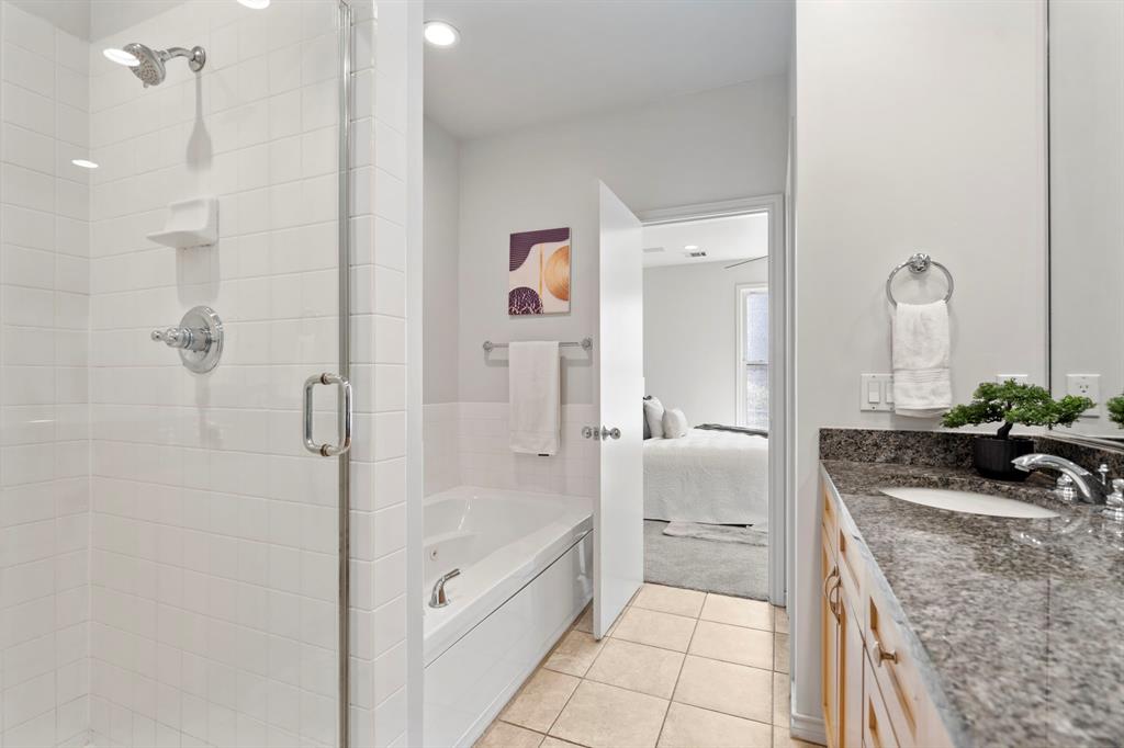 Upstairs, a private third-floor primary suite offers a true retreat with a jetted tub, stand-up shower, dual sinks, and a generous walk-in closet. A spacious second bedroom and full bath complete the layout. Outdoor spaces include a second-floor balcony and a fenced patio off the garage for added privacy. The tandem two-car garage includes a bonus storage nook.