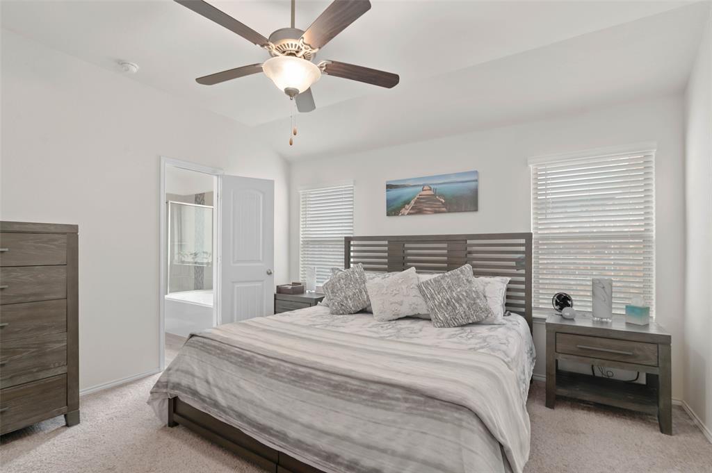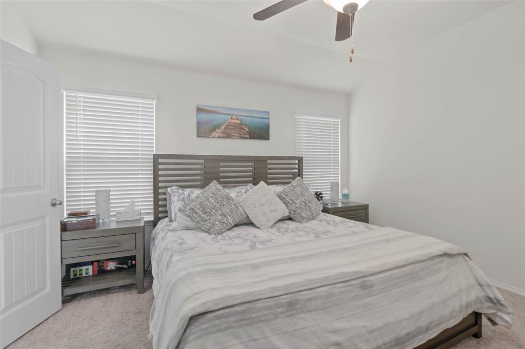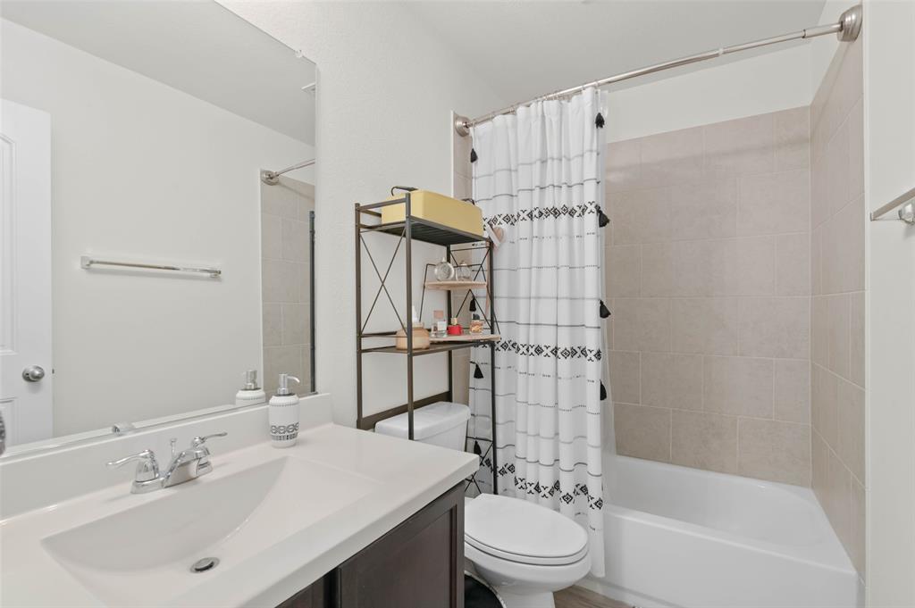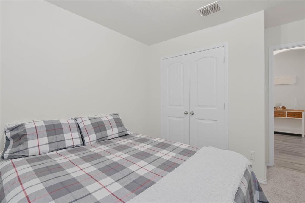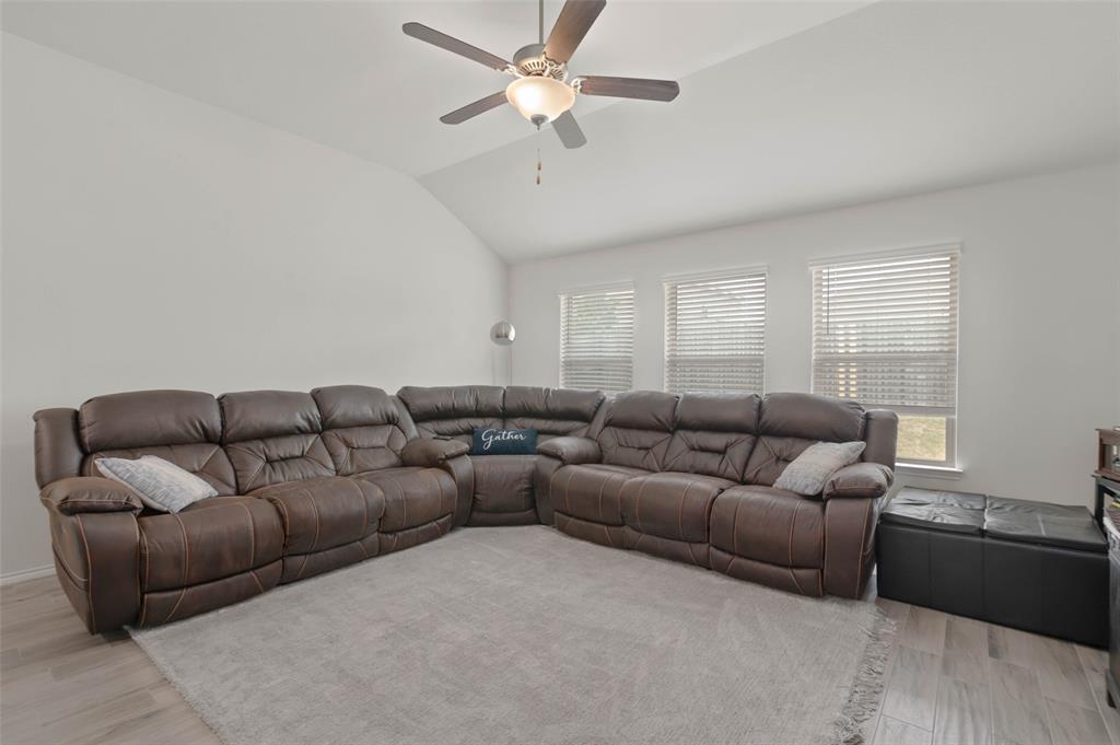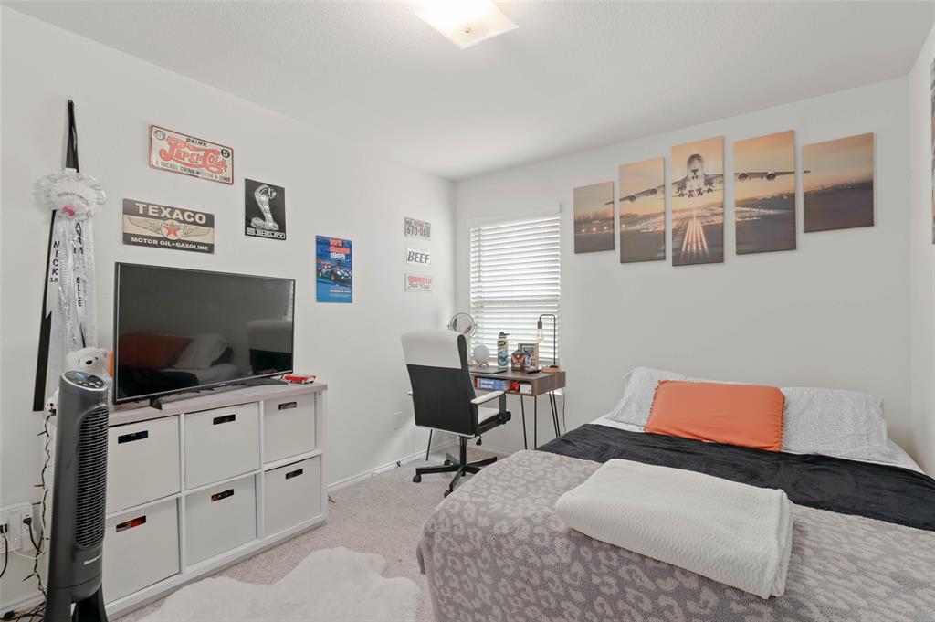 Step into comfort and style with this beautifully designed Lennar Bluebonnet floor plan featuring 4 spacious bedrooms, 2 full bathrooms, and a dedicated study with elegant French doors making this perfect for a home office or flex space. The open concept layout is ideal for both everyday living and entertaining, showcasing a modern kitchen with quartz countertops, stainless steel appliances, and ample cabinetry that flows effortlessly into the living and dining areas. The private primary suite offers a relaxing retreat with a luxurious ensuite bath complete with a separate soaking tub, walk in shower, and a generous walk-in closet. Additional highlights include a 1 YEAR OLD ROOF, multiple Smart Home features, an energy efficient 16 SEER HVAC system, and carpet only in the bedrooms. Enjoy outdoor living on the covered patio overlooking a grassy backyard, perfect for gatherings or quiet evenings at home. This energy efficient, well-appointed home blends comfort and functionality in every corner.
