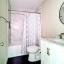 Both bathrooms have been refreshed with luxury vanities, tile flooring, and updated toilets. The secondary bathroom includes a replaced tub, while the primary suite boasts an oversized walk-in shower with frameless glass doors, plus generous walk-in and linen closets.
