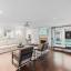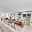 Downstairs offers ample living space with dual, graciously sized living rooms. Windows line the back of the home providing great natural light and views overlooking the spectacular pool and turfed yard. The semi-open floorplan flows to the kitchen which is furnished with white cabinetry, SS Bosh appliances including a dual oven, gas cooktop, a beverage fridge and a wine fridge.