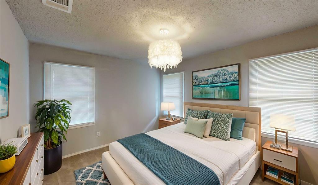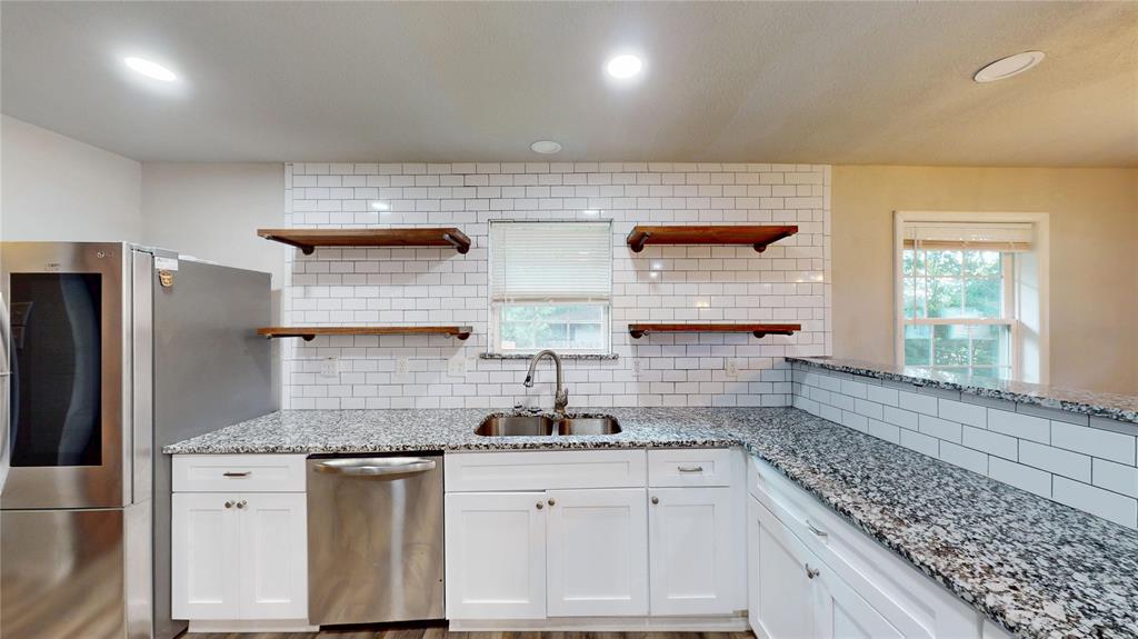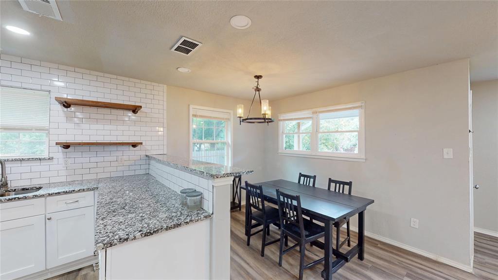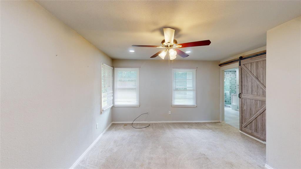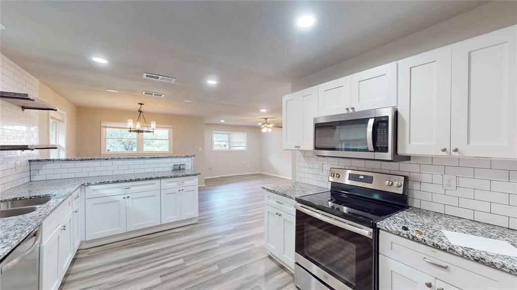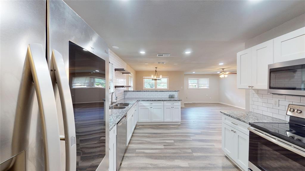Welcome to this charming and meticulously updated home, nestled in a desirable neighborhood with a spacious, lush front yard that offers a warm and inviting curb appeal. This delightful residence features a modern open-concept living area, seamlessly connecting the living room and a beautifully updated kitchen. The kitchen boasts elegant countertops, contemporary white cabinetry, and sleek stainless steel appliances, providing a perfect backdrop for both casual dining and entertaining. The living area's large windows flood the space with natural light, highlighting the elegant flooring and creating a cozy, yet sophisticated ambiance. Each bedroom is generously sized, offering ample space for relaxation, with the master suite featuring a unique sliding barn door leading to an en-suite bathroom. The bathrooms are thoughtfully designed with stylish tilework and modern fixtures. Step outside to the expansive backyard—a true sanctuary with plenty of shade and privacy, ideal for outdoor activities or tranquil evenings. This home combines comfort, style, and functionality, making it an ideal choice for those seeking a move-in-ready gem in a vibrant community.