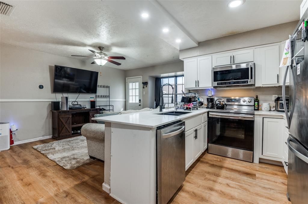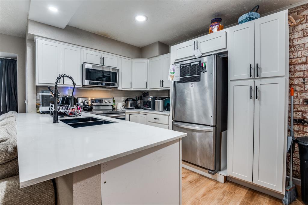 Welcome to this beautifully maintained 2-bedroom, 2-bathroom townhome offering 1,100 square feet of comfortable living space in the heart of Grand Prairie! This move-in-ready home features sleek vinyl flooring throughout, providing both durability and easy maintenance.