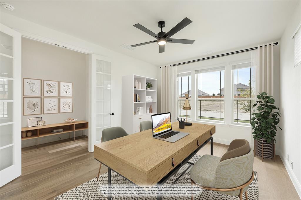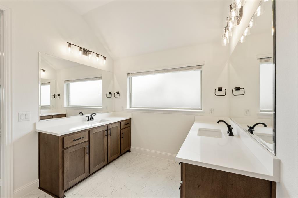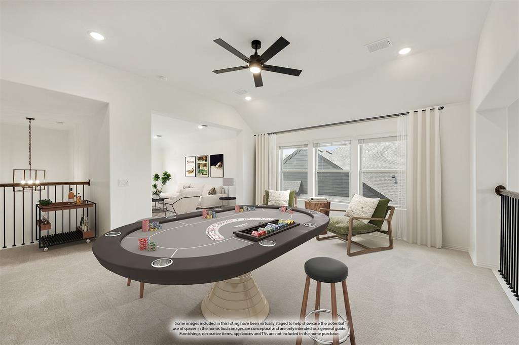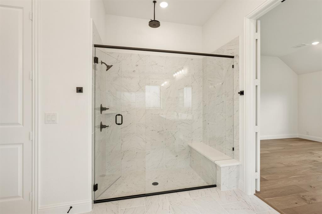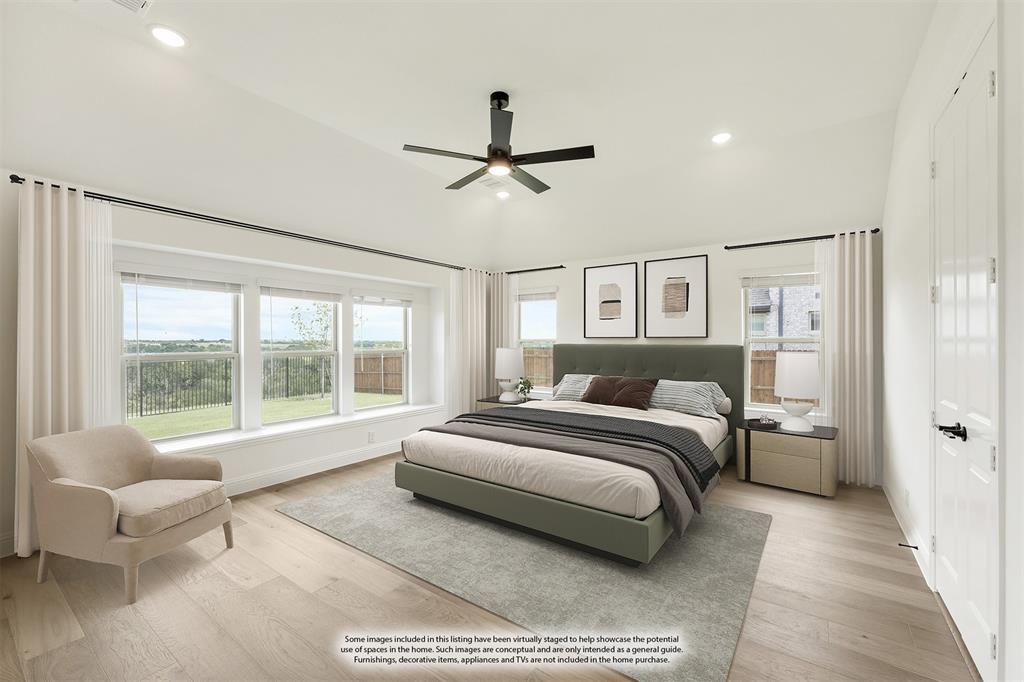 NEW! NEVER LIVED IN! Bloomfield’s Bellflower II on an oversized greenbelt lot welcomes you with timeless curb appeal, featuring a full brick exterior and an impressive 8' front door. Inside, the Family Room impresses with soaring 17' ceilings and a striking tile-to-ceiling fireplace with cedar mantel, delivering both warmth and wow factor. The open-concept Deluxe Kitchen is designed for both beauty and function, showcasing a double oven, 5-burner gas cooktop, quartz countertops, a large California island, custom cabinetry, and a spacious walk-in pantry. Just off the Kitchen, a convenient mudroom provides everyday organization. Thoughtful upgrades continue throughout with engineered wood floors flowing from the entry to to the Family Room and Kitchen, INCLUDING the Primary Suite. The expansive Primary Suite is a serene retreat with an enlarged shower, dual vanities, and a generously sized walk-in closet. This flexible floor plan also includes a private Study, Formal Dining, Powder Room, and Guest Suite on the first level. Upstairs, a large Game Room, two secondary bedrooms connected by a Jack & Jill bath, and a Media Room complete the space—ideal for family living or entertaining. Additional highlights include 8' interior doors on the first floor, metal fencing, and a spacious 2.5-car garage, perfect for storage or hobbies. Visit Bloomfield Homes today to tour the Bellflower II—a home that blends custom design, elevated finishes, and everyday functionality in one remarkable package.