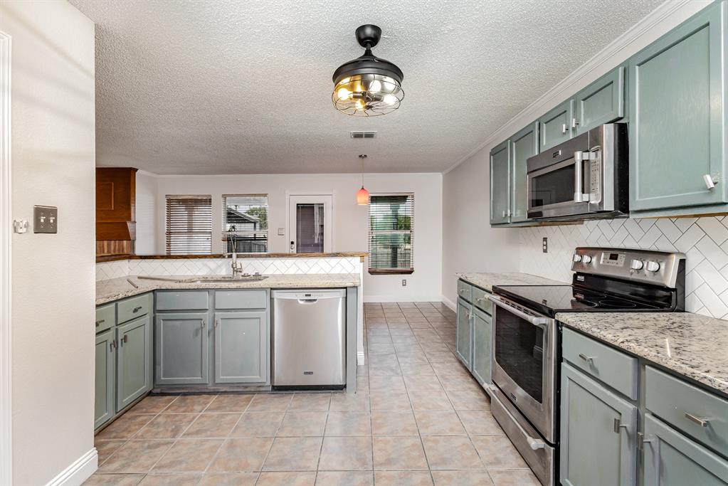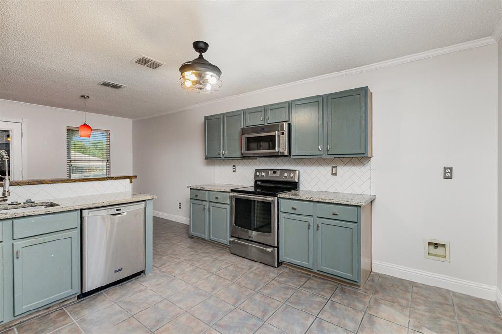 features granite counters, plenty of storage, a kitchen island and massive walk in pantry. All three