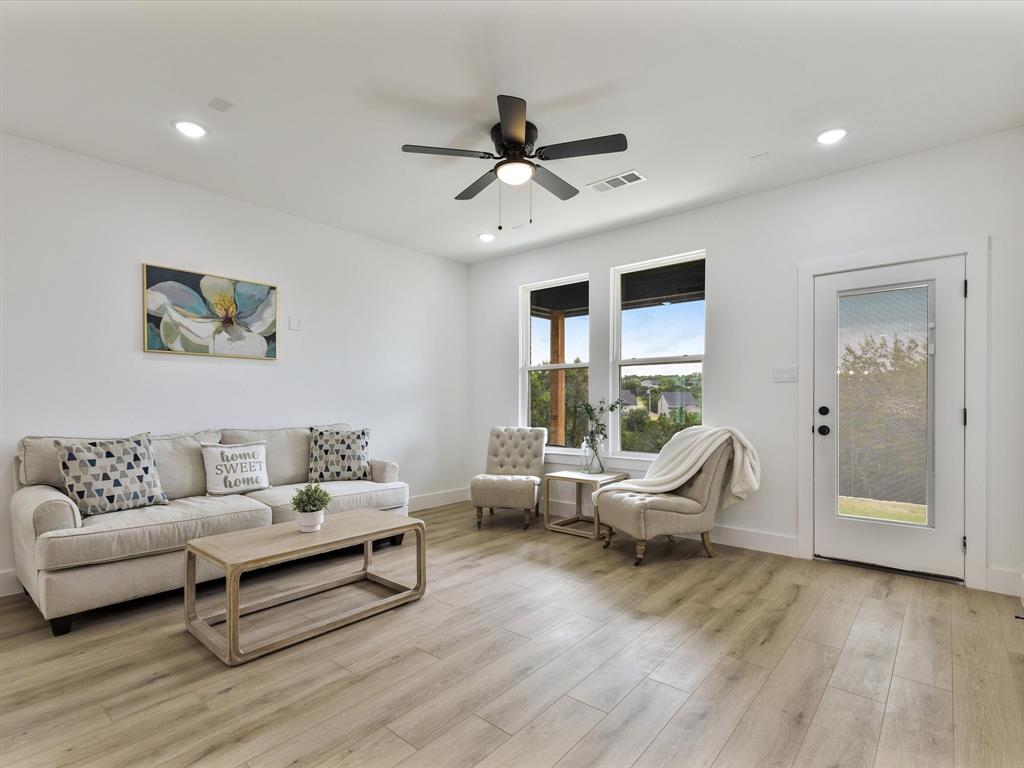!!MOTIVATED SELLER!! Please bring ID to enter at the gate. Welcome to your fisherman's paradise! Discover comfort, space, and natural beauty in this private retreat located in the gated Canyon Creek community with access to Lake Granbury. Set on just over half an acre, the property backs to a peaceful creek—perfect for fishing or peaceful moments listening to the babbling brook. Inside, you'll find 4 spacious bedrooms, including a versatile flex space ideal for an office or game room. The airy, open-concept design features vaulted ceilings, a stunning kitchen with quartz countertops, stainless steel appliances, and custom cabinetry with elegant accent lighting beneath the cabinetry. The serene primary suite offers a spa-inspired bath designed for relaxation. Enjoy added peace of mind with a security checkpoint at the community entrance. Residents also have access to 2 community pools, a clubhouse, playground with a small beach area, a basketball, tennis, and pickelball court, as well as a fishing pier. This new-construction home is just minutes from local dining, shopping, entertainment, and the local marina. The home also comes with the peace of mind of a 1-2-10 year warranty. With so many amenities and luxurious finishes, this property won't last long. Schedule your showing today!