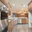 The primary suite feels like a retreat with dual vanities, a walk-in shower, and custom built-ins. Even the secondary bath impresses with a marble countertop and hammered copper sink, an unexpected touch of luxury.