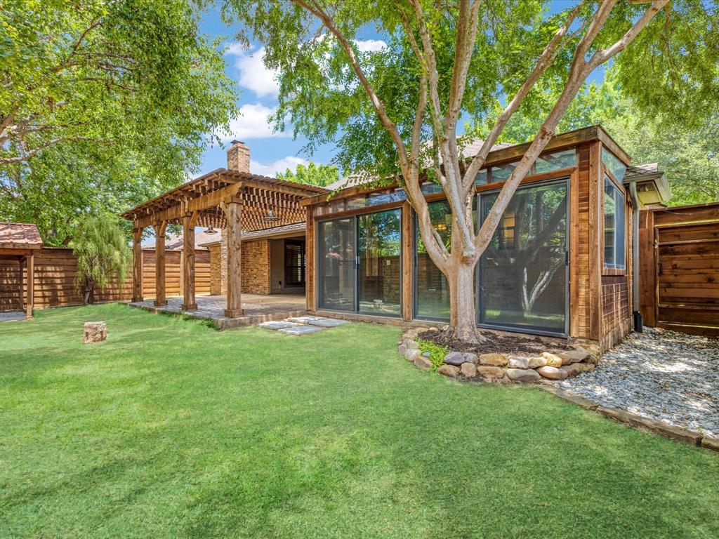 Step outside to your private backyard oasis. Relax under the pergola on the stamped concrete patio, garden in your custom greenhouse, or escape to the finished “she shed” with electricity, ideal for a studio, office, or hideaway. Mature trees, a full sprinkler system, and a MosquitoNix misting system make outdoor living effortless year-round.