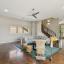 The second floor is the heart of the home, showcasing a stylish kitchen with luxury Bosch stainless steel appliances, marble finishes, custom cabinetry, and designer lighting, all under striking vaulted ceilings. The open-concept living and dining areas make it easy to host and relax.