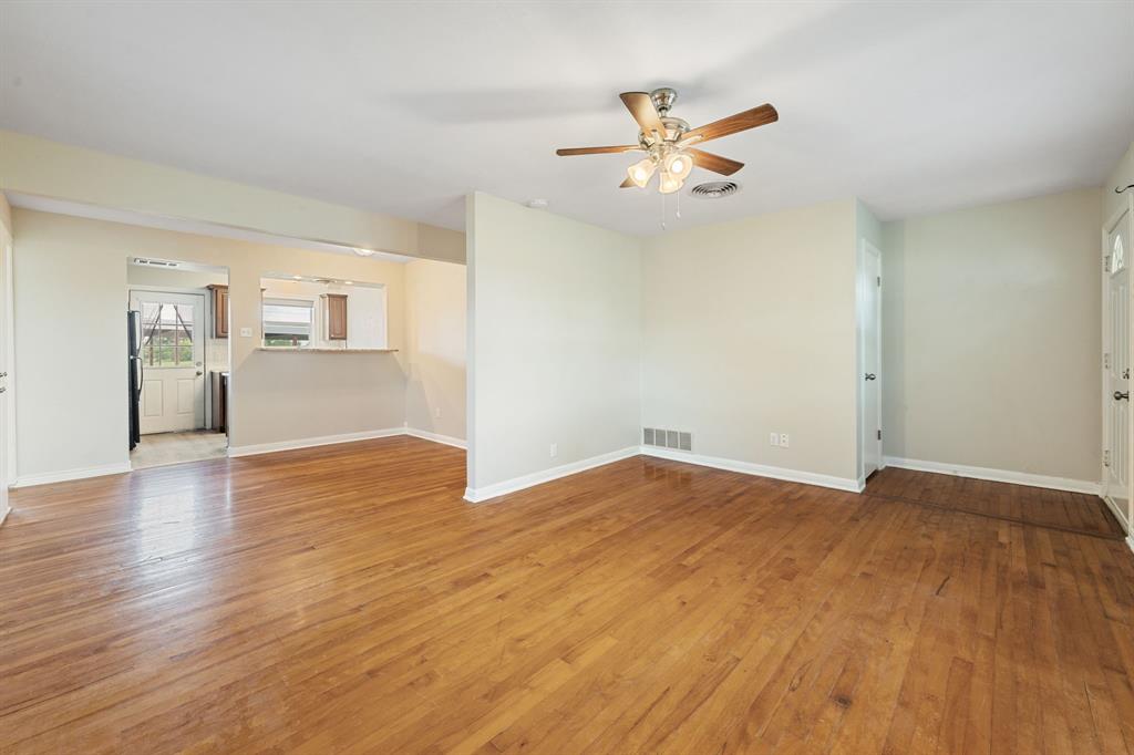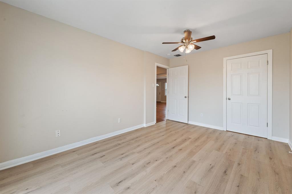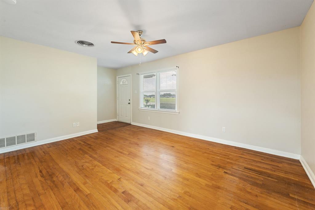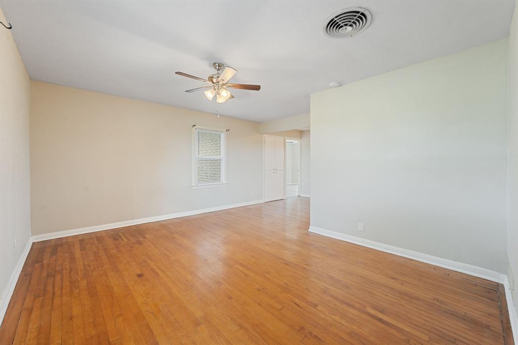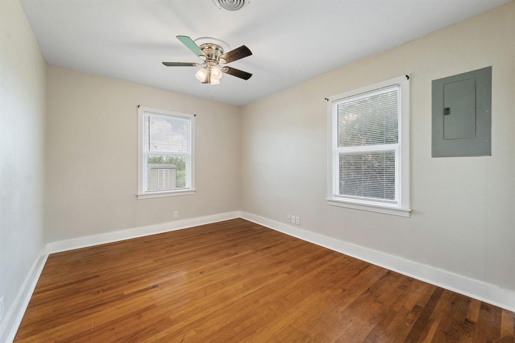 Welcome to this inviting home featuring an open floor plan with 4 bedrooms and 2 full bathrooms, plus living area. You'll love the character and warmth of the original hardwood flooring, complemented by ceiling fans throughout and an abundance of natural light streaming through numerous windows. The hall utility closet offers space for a full-size washer and dryer along with built-in shelving for added storage.