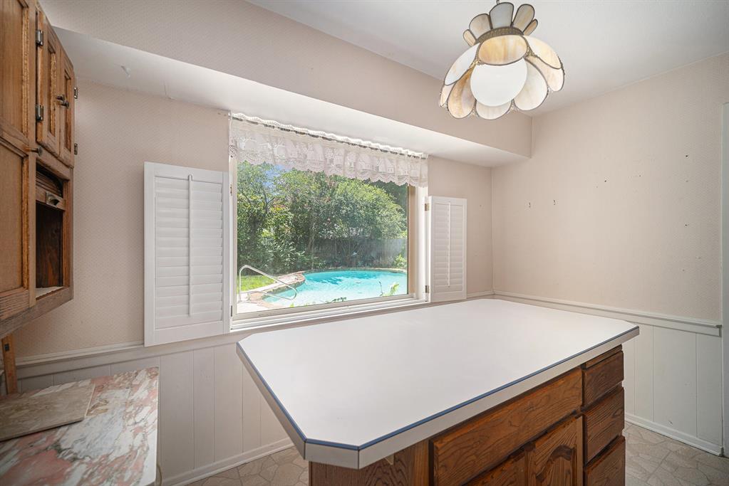 Welcome to this spacious 3-bedroom, 2-bathroom home, designed to provide comfort, functionality, and room for your family to grow. Nestled in a quiet, established neighborhood within the Fort Worth ISD-Benbrook -Western Hills High School (Go Cougars!) This home combines classic charm with practical living. Step inside to discover a formal dining room, perfect for family dinners and holiday gatherings. Just off the dining area is a cozy den featuring an electric fireplace, a relaxing space to unwind or entertain guests. The heart of the home is the kitchen, complete with an eat-in island ideal for casual meals or extra prep space. Adjacent to the kitchen is a well-equipped utility room with washer and dryer hookups. This multi-use space also includes a small workstation area that’s perfect for a desk, sewing machine, or crafting area, and features a large closet for extra storage. A single door from this room provides direct access to the attached 2-car garage for added convenience. Out back, enjoy your own private retreat with an in-ground pool—perfect for cooling off during those hot Texas summers. This fenced backyard is shaded by mature trees, features lush, thick St. Augustine grass, and offers a safe and spacious play area for kids and pets alike.