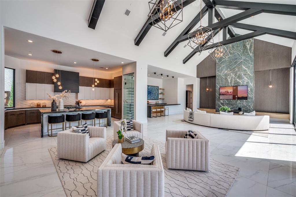 Step through the grand entryway into an open-concept living space adorned with soaring ceilings, modern tile floors, and expansive windows that bathe the home in natural light. The chef’s kitchen is a culinary dream, featuring commercial-grade appliances, a gas cooktop, dual dishwashers, a warming drawer, double ovens, and a spacious pantry that’s perfect for hosting gatherings or preparing intimate dinners.