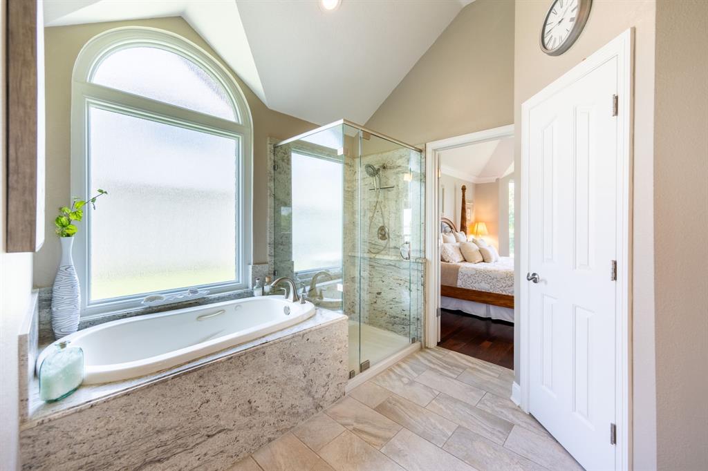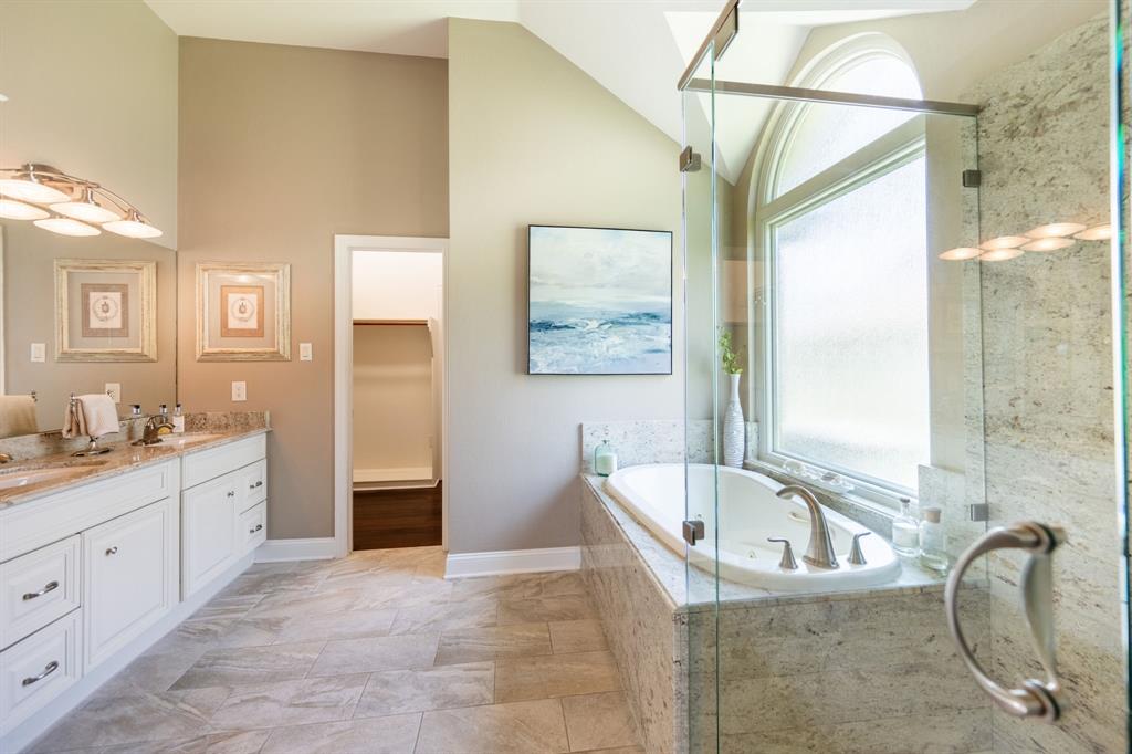 The oversized primary suite is a relaxing retreat with spa-style bath, dual sinks, walk-in shower, and a generous closet.