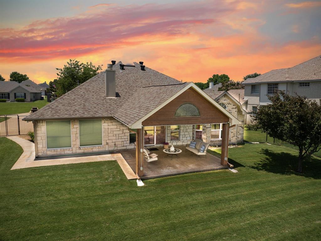 Step outside to a custom covered patio, perfect for enjoying coffee at sunrise or wine at sunset.