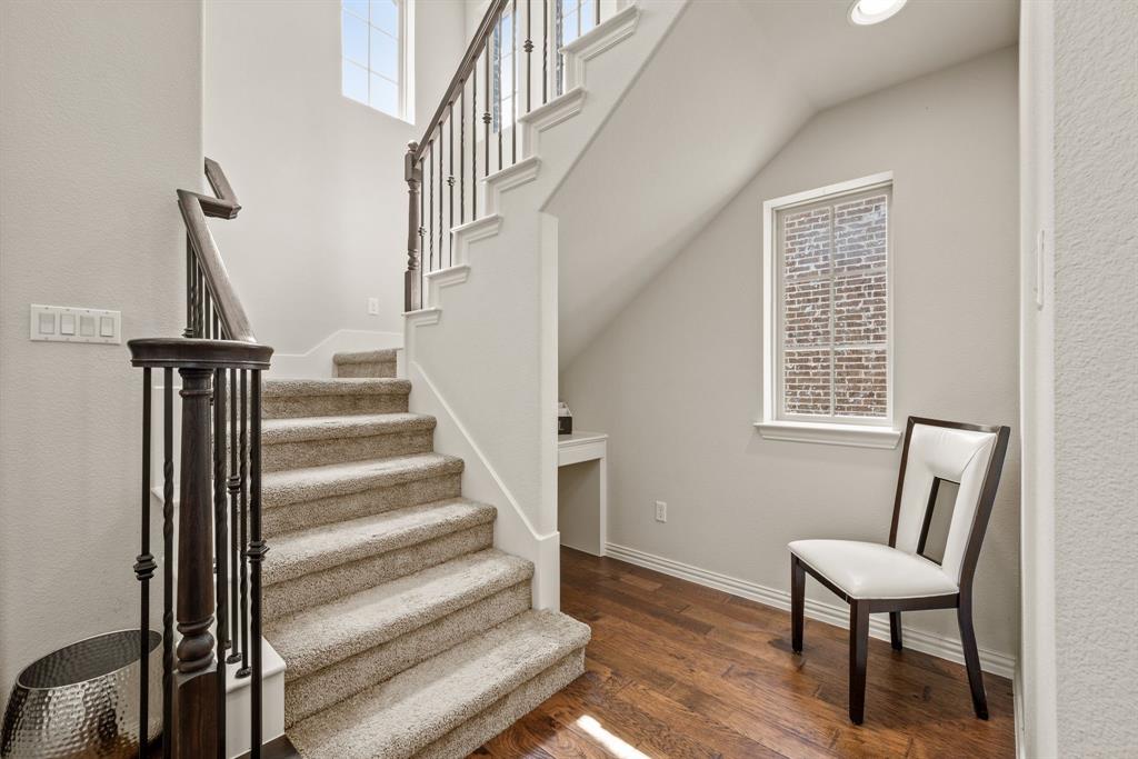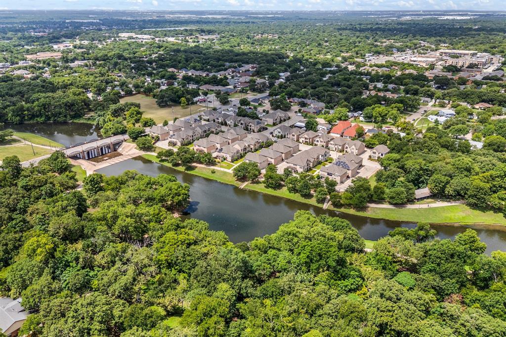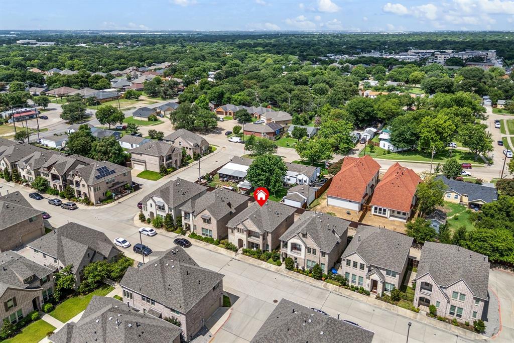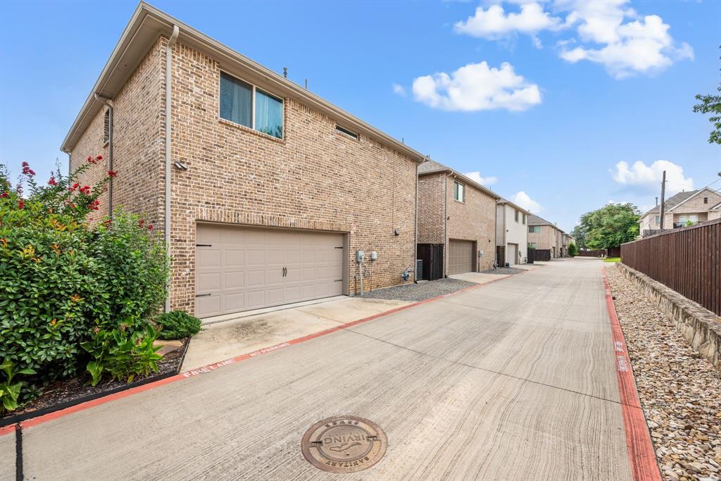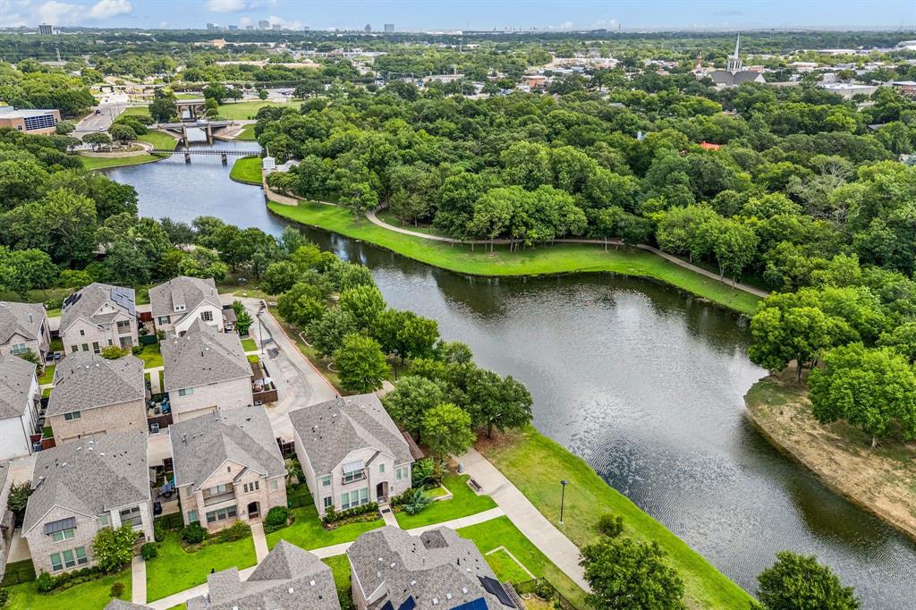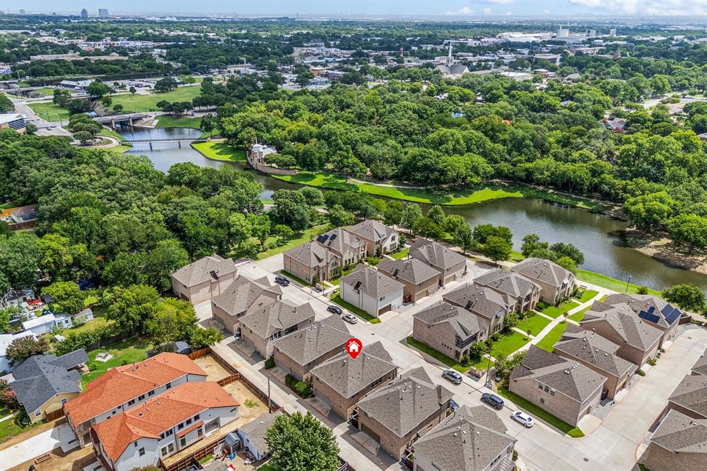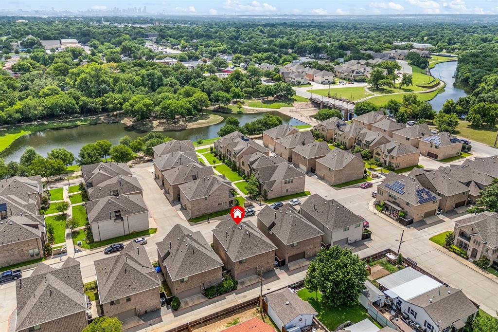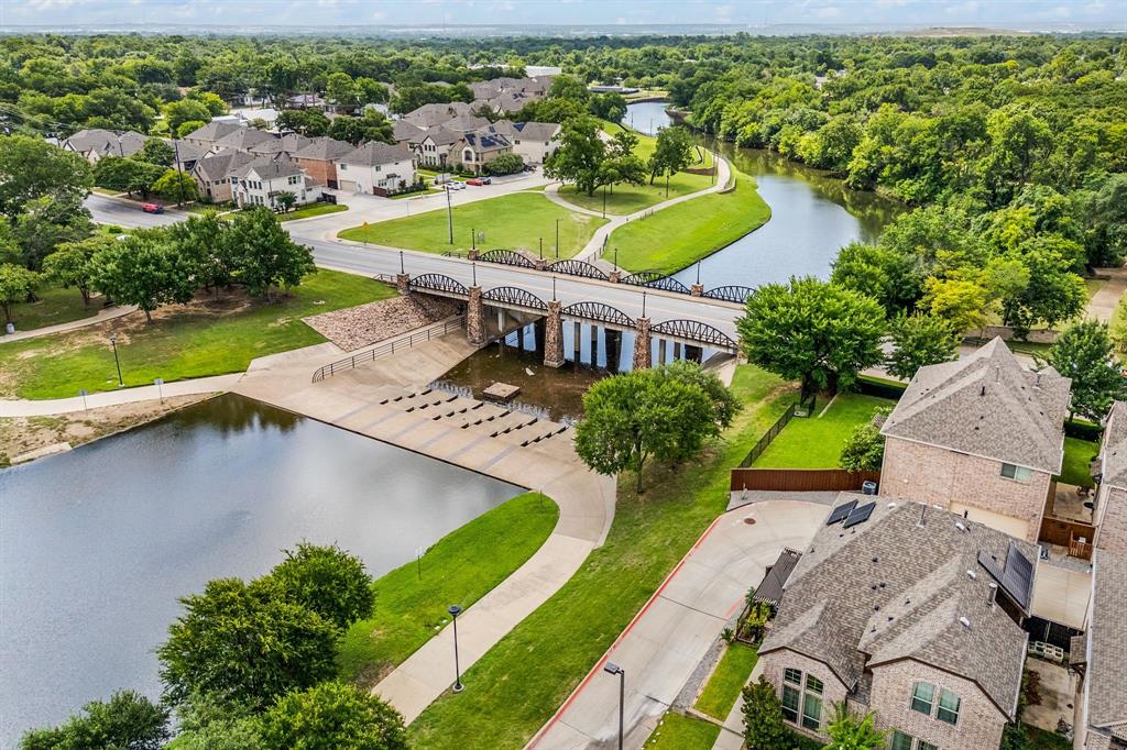 Sophisticated yet cozy in equal measure, this spotless K Hovnanian lock-and-leave Villa has been loved & maintained by one owner (with no children or pets) since construction. It has an auspicious EAST FACING frontage and incredibly PRIME LOCATION. The creek and walk-hike-bike trails attached to the subdivision are connected to recently renovated Centennial Park which has restrooms, a commemorative history wall, shoreline picnic pavilion, BBQ, more concrete trails and is lit at night. Furthermore, the commute is only .8 miles to the Irving-Heritage Crossing Rail Station which has 10 bus bays, free commuter parking and is served by TRE trains. Also! Merely 9 miles to DFW Airport OR Love Field, 13 to downtown Dallas. Notable EXTERIOR FEATURES onsite are the generous front rain porch, 19x8 side grilling-sitting patio with wood awning (a rare attribute within the community) and 4x13 upstairs balcony with WATER VIEW of expansive Delaware Creek. INSIDE, the floor-plan is OPEN, spacious, stylish. Downstairs houses the attached two-car garage with automatic opener, half-bath, 3x8 reading nook, dedicated dining, massive living room with GAS LOG fireplace (has electric wall starter, chic glossy rhomboid tile, stained wood mantel) and Kitchen. Observe granite, continued patterned tile at backsplash, stainless appliances, single-basin sink, counter-height breakfast bar, cooktop ventilation, coffee station, pantry, designer lighting. Upstairs has second living area (in the form of a loft), all bedrooms, both full baths and adjacent Laundry. Yes, utility conveniently on Level 2 versus owner climbing down-up with load after load! Palatial primary is en suite with that sweeping balcony water-view, sitting area, double sinks, water closet, sizable shower, walk-in closet, linen storage. Energy efficient perks include 16 SEER AC, tankless water heater, radiant barrier, low-E windows, Energy Star® certification! 3.25% assumable FHA loan for Buyers who have required down payment funds.