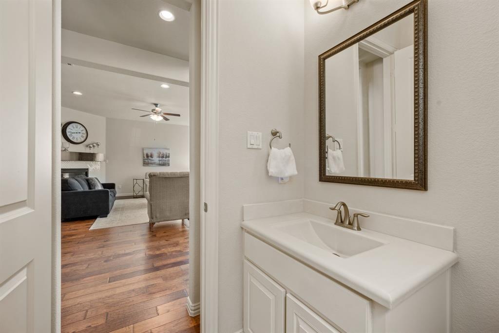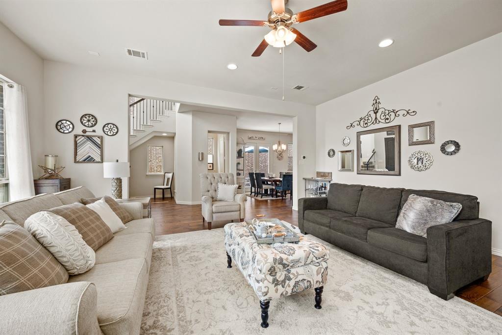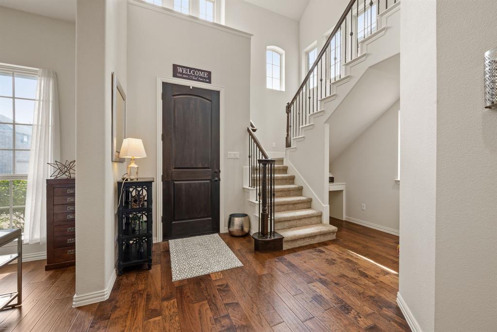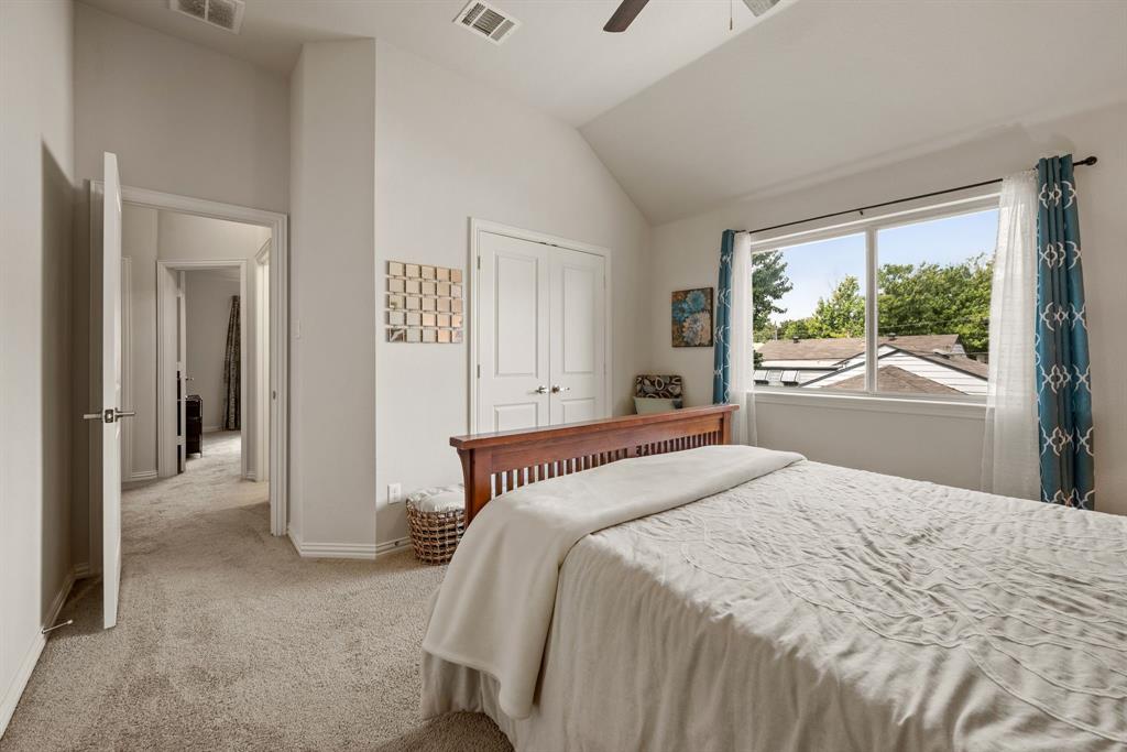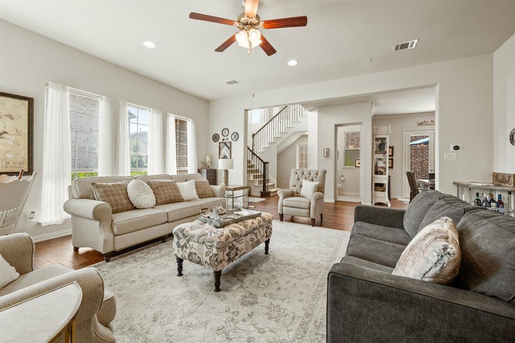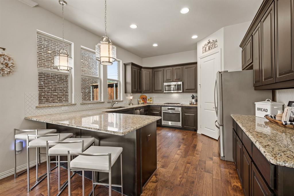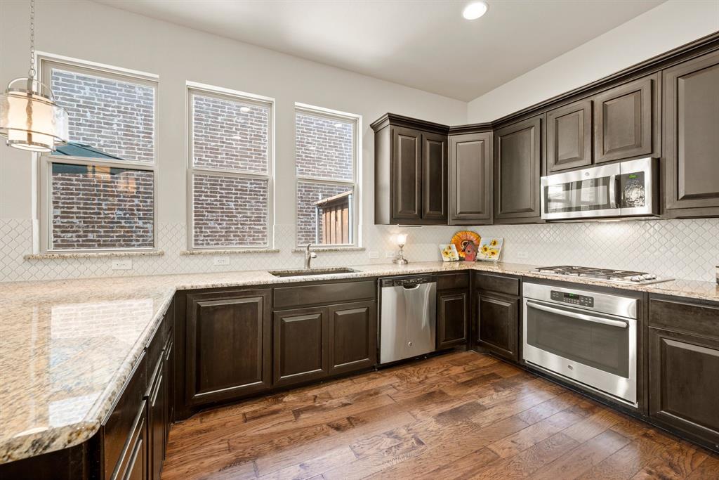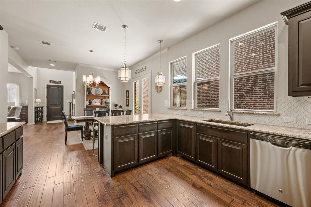 Sophisticated yet cozy in equal measure, this spotless K Hovnanian lock-and-leave Villa has been loved & maintained by one owner (with no children or pets) since construction. It has an auspicious EAST FACING frontage and incredibly PRIME LOCATION. The creek and walk-hike-bike trails attached to the subdivision are connected to recently renovated Centennial Park which has restrooms, a commemorative history wall, shoreline picnic pavilion, BBQ, more concrete trails and is lit at night. Furthermore, the commute is only .8 miles to the Irving-Heritage Crossing Rail Station which has 10 bus bays, free commuter parking and is served by TRE trains. Also! Merely 9 miles to DFW Airport OR Love Field, 13 to downtown Dallas. Notable EXTERIOR FEATURES onsite are the generous front rain porch, 19x8 side grilling-sitting patio with wood awning (a rare attribute within the community) and 4x13 upstairs balcony with WATER VIEW of expansive Delaware Creek. INSIDE, the floor-plan is OPEN, spacious, stylish. Downstairs houses the attached two-car garage with automatic opener, half-bath, 3x8 reading nook, dedicated dining, massive living room with GAS LOG fireplace (has electric wall starter, chic glossy rhomboid tile, stained wood mantel) and Kitchen. Observe granite, continued patterned tile at backsplash, stainless appliances, single-basin sink, counter-height breakfast bar, cooktop ventilation, coffee station, pantry, designer lighting. Upstairs has second living area (in the form of a loft), all bedrooms, both full baths and adjacent Laundry. Yes, utility conveniently on Level 2 versus owner climbing down-up with load after load! Palatial primary is en suite with that sweeping balcony water-view, sitting area, double sinks, water closet, sizable shower, walk-in closet, linen storage. Energy efficient perks include 16 SEER AC, tankless water heater, radiant barrier, low-E windows, Energy Star® certification! 3.25% assumable FHA loan for Buyers who have required down payment funds.