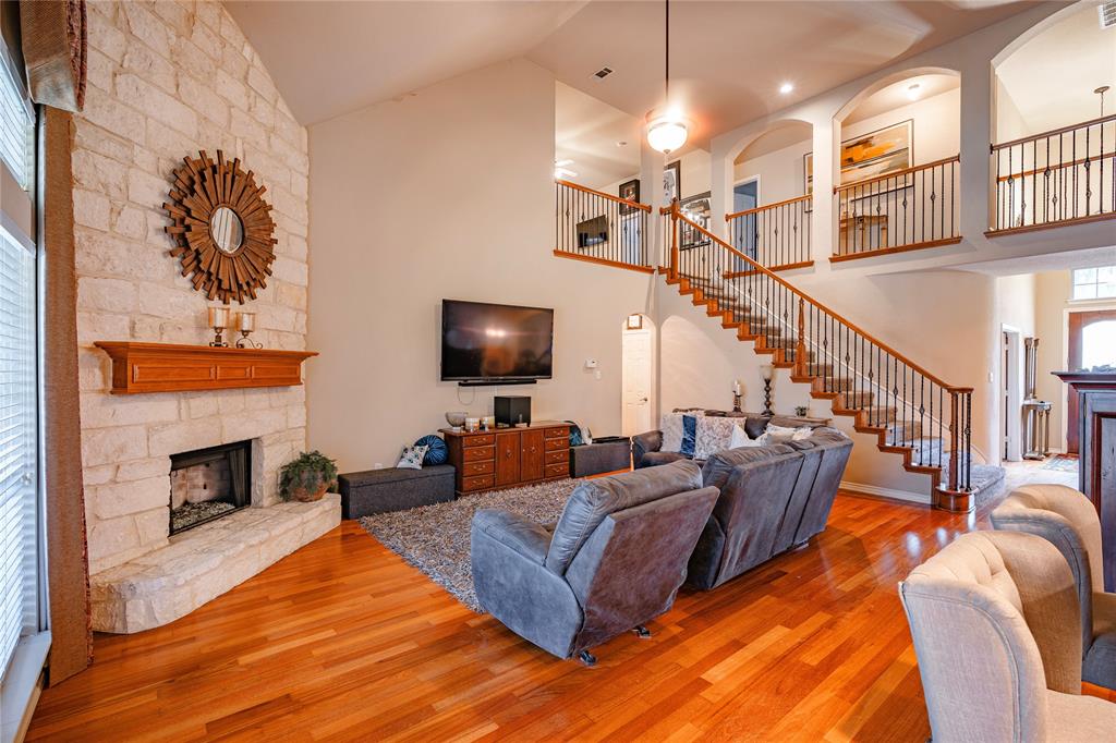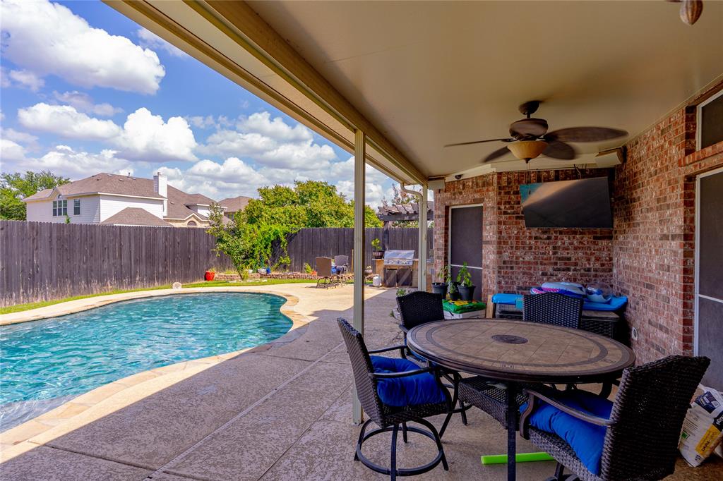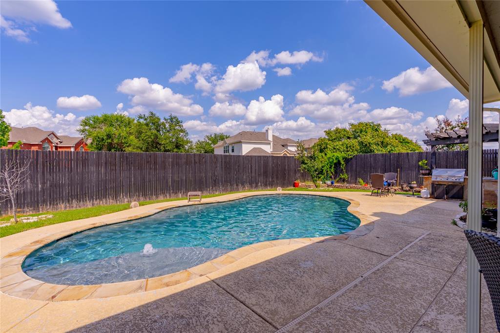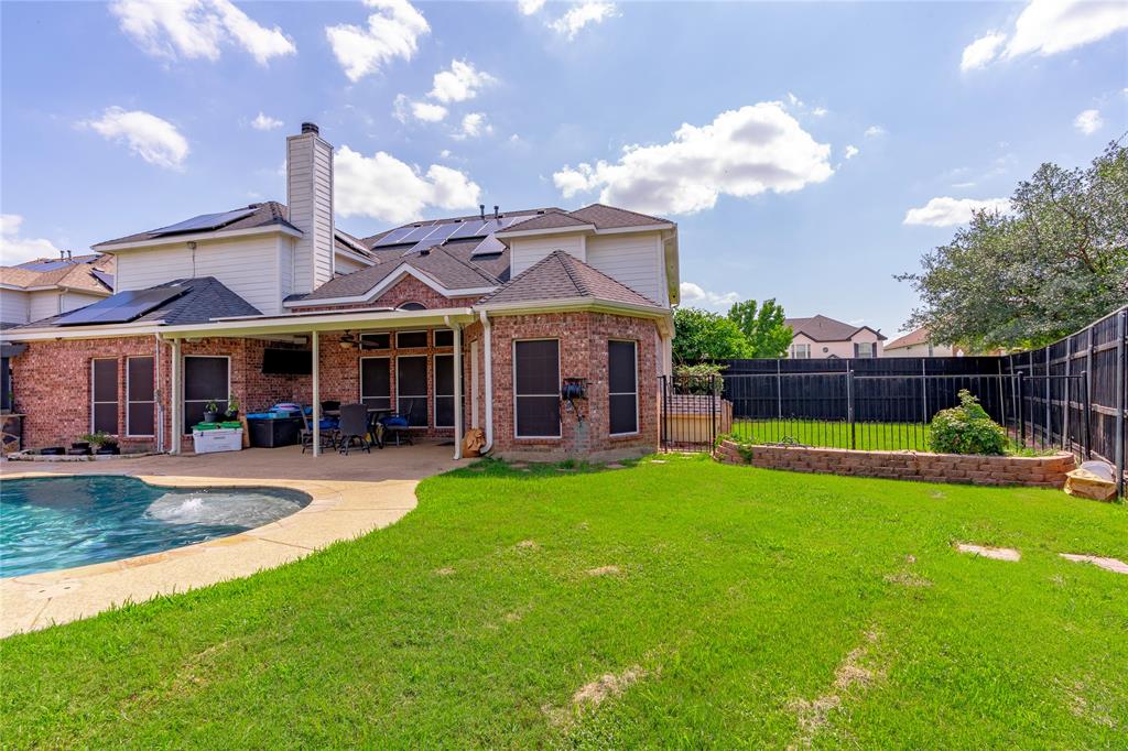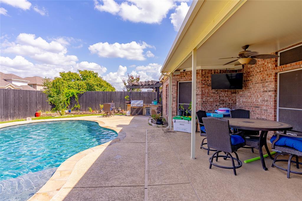 Big CORNER LOT energy coming through! From the moment you arrive, this home makes a statement…extra yard, extra space & all the room you need to live, work & play! The FORMAL LIVING & DINING ROOM are ready for lively holiday gatherings & the designated OFFICE is a quiet space to conquer your to-do list. Love to cook? You’ll be head chef in a kitchen that boasts tons of CABINETS & COUNTER SPACE! Including an ISLAND perfect for prepping or snacking & a sleek GAS COOKTOP ready for your signature dish. The adjoining family room with a cozy FIREPLACE will be your favorite spot with a good book. The LARGE PRIMARY SUITE is a true retreat. It gives spa vibes with DUAL VANITIES, a luxurious SOAKING TUB & a separate SHOWER. Upstairs, OVERSIZED SECONDARY BEDROOMS mean no one’s stuck with a small room & a GAME ROOM & SEPARATE MEDIA ROOM is next-level fun. WOAH…let’s talk about this backyard! The 8 FT PRIVACY FENCE makes it your own resort! Flip burgers in the OUTDOOR KITCHEN, cannonball into the sparkling SALTWATER POOL or kick back under the COVERED PATIO with a cold drink in hand. It even features a FENCED DOG RUN because pups deserve paradise too! Plus SOLAR PANELS help keep energy costs down. All this AND $5,000 CONCESSIONS to use as you please! This home is calling your name! See it today!