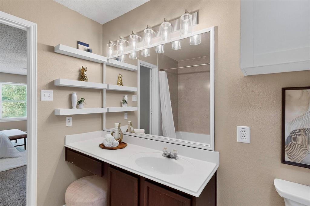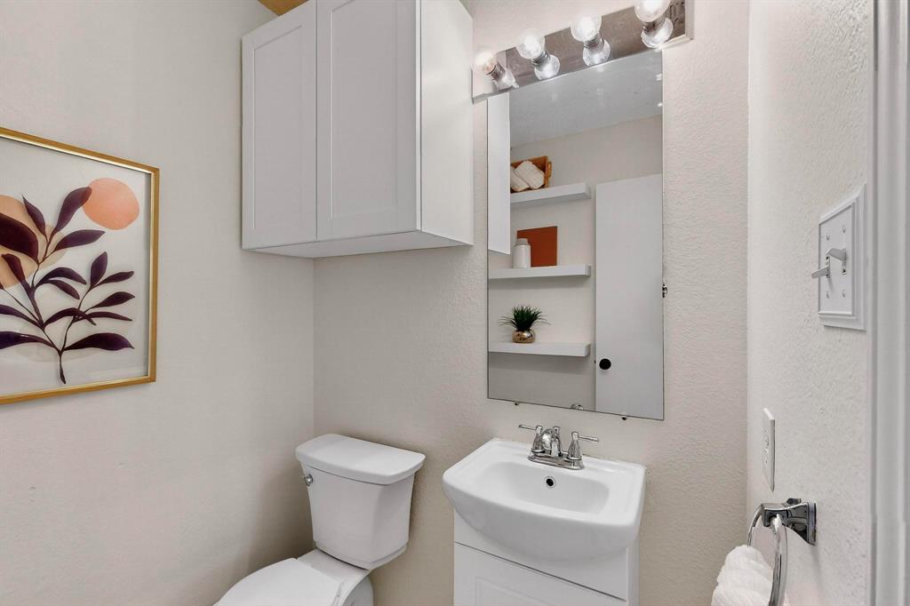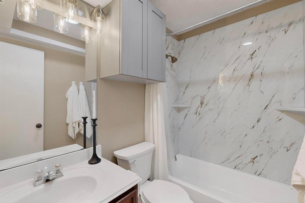 This home boasts numerous updates throughout, including recently installed laminate and vinyl flooring that complement the modern aesthetic. Both bathrooms have been tastefully renovated with new tile work, tubs, and fixtures, providing a fresh and contemporary feel.