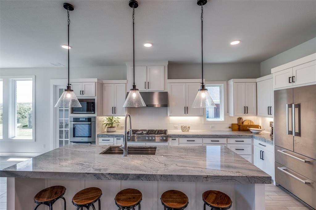 Exquisitely crafted by Gutman Custom Homes and perfectly poised on over half an acre in the prestigious Bridges at Preston Crossings, this 2022 masterpiece offers 4,006 sq ft of refined luxury and modern innovation Every detail of this architectural gem reflects elevated living—from the thoughtful layout to the superior finishes. A grand entry welcomes you into an atmosphere of timeless elegance and contemporary comfort. The expansive great room seamlessly connects formal and informal living spaces, perfect for both stylish entertaining and intimate family gatherings. At the heart of the home lies a gourmet chef’s kitchen, appointed with top-of-the-line Miele appliances, dual dishwashers, an oversized walk-in pantry, and a discreet butler’s pantry—designed for seamless hosting and effortless organization. The luxe lifestyle extends outdoors with a fully appointed summer kitchen, ideal for al fresco dining and entertaining under the stars. The Owner’s Retreat is a sanctuary, complete with a spa-inspired bath, soaking tub, frameless glass shower, and a generous custom walk-in closet. A private guest suite with en suite bath completes the main level. Upstairs, you’ll find two spacious bedrooms with private baths, a large game room, and a media room offering endless possibilities for entertainment and relaxation.