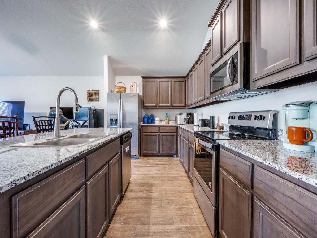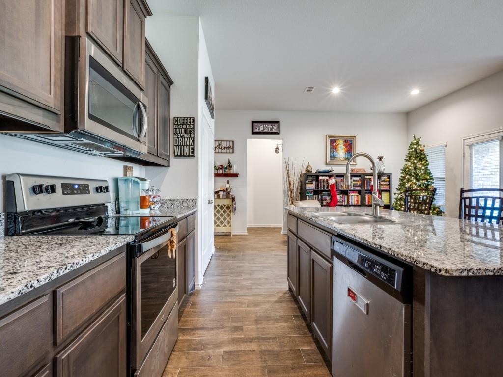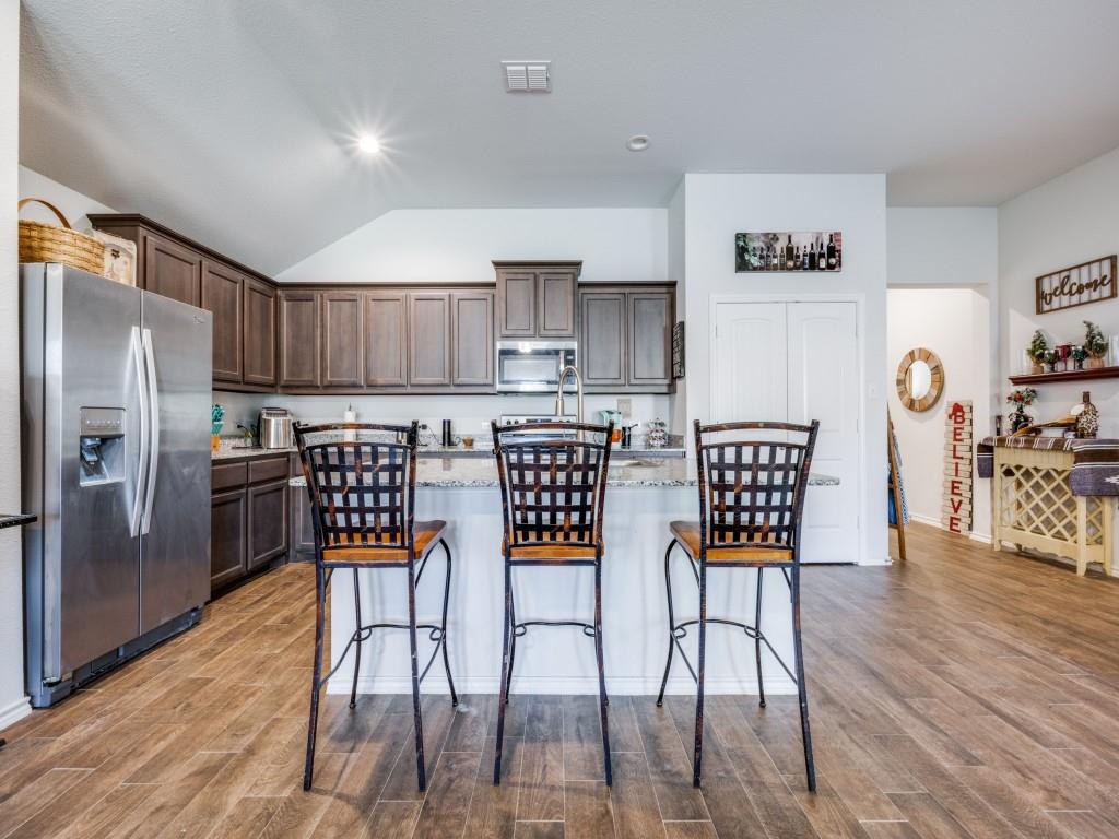 Motivated Seller all offers will be considered! Beautiful 3 bedroom home in the sought after Hardeman Estates in Justin. Wood tile easy maintenance flooring is located thru most of the home and new carpet in the bedrooms! There are two bedrooms and a bathroom located at the front of the home. The primary bedroom is located in the back of the home with the primary bathroom. This allows for plenty of privacy! The kitchen has a large island with a breakfast bar for ample seating. The kitchen overlooks the living room. This open floor plan is great for entertainment. This home not only has a lot to offer but has the perfect location. Just minutes from the New Justin elementary school, highways and lots of shopping. You will fall in love with this home and the town of Justin!