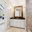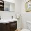 The primary suite is privately situated downstairs and features direct yard access, a spa-style bath with soaking tub and separate shower, and dual walk-in closets. From the master’s own terrace walkout, enjoy quiet mornings or moonlit evenings surrounded by garden calm.